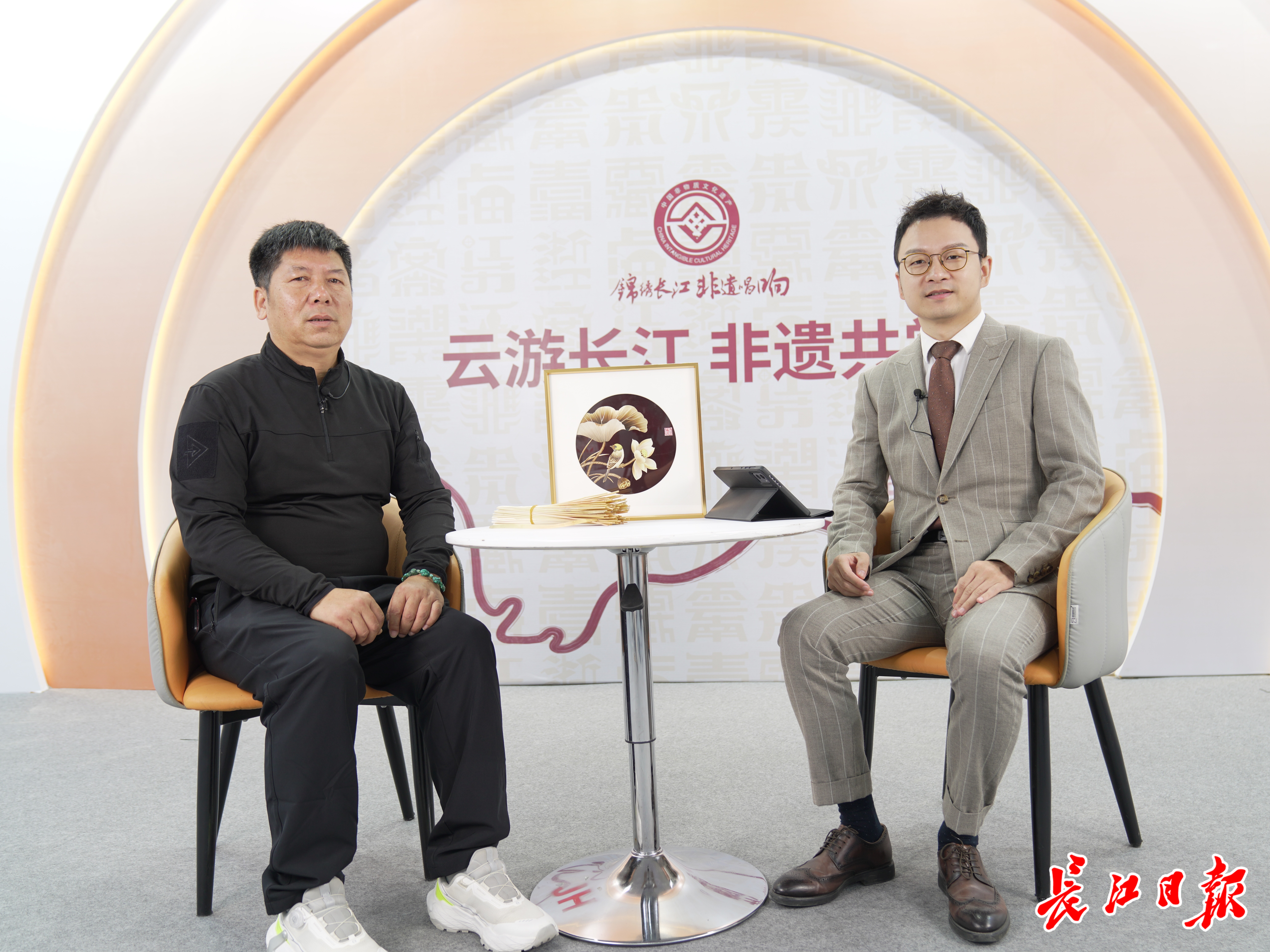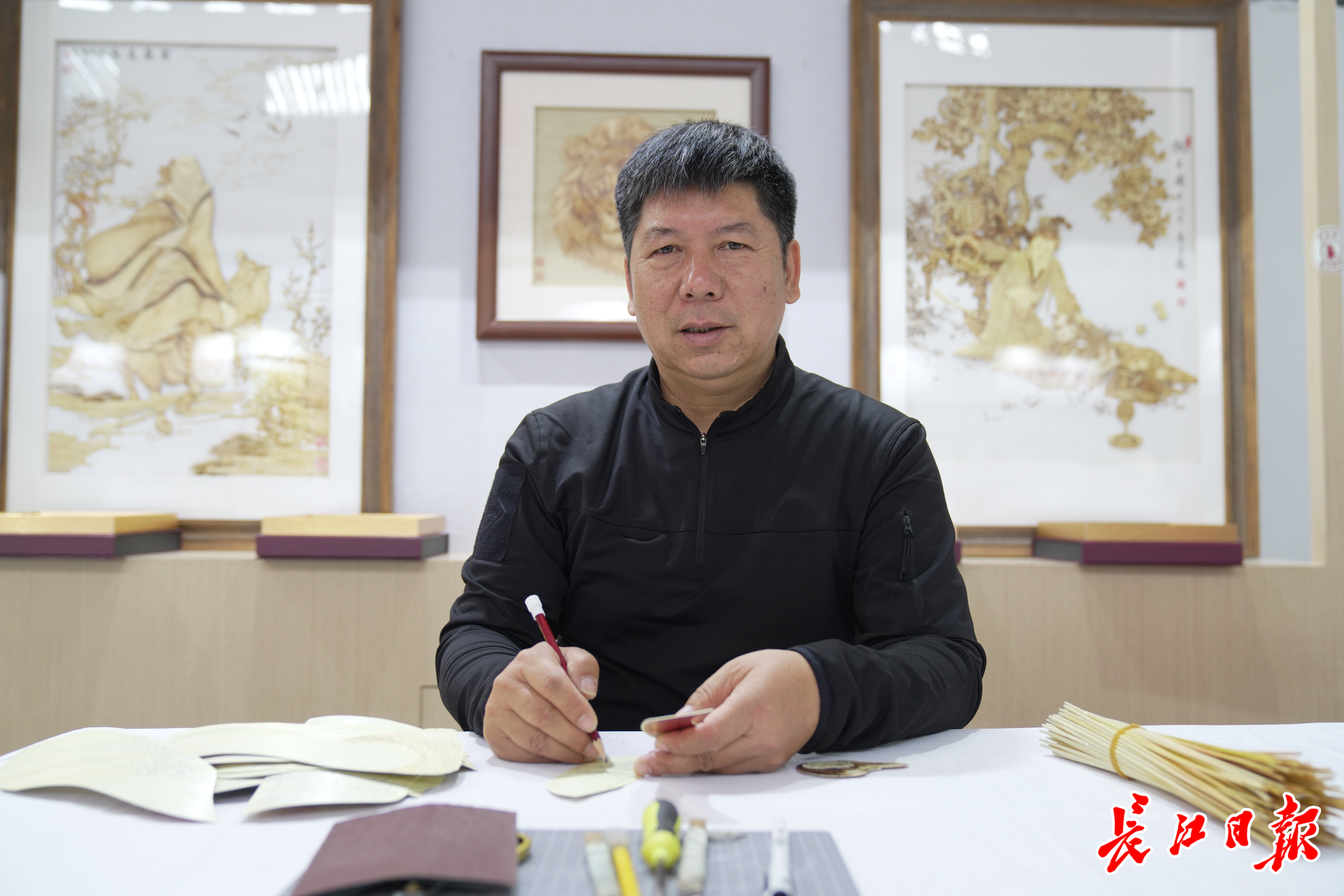 10月27日上午,仙桃麦秆画省级非遗代表性传承人邓小军做客长江日报“云游长江 非遗共赏”直播间。他说:“我从小就接触麦秆画,差不多做了30多年,在父亲邓友谱的影响下走上从艺这条路。长时段看,从事传统技艺的人越来越少,但家传的手艺总得有人传承吧!”