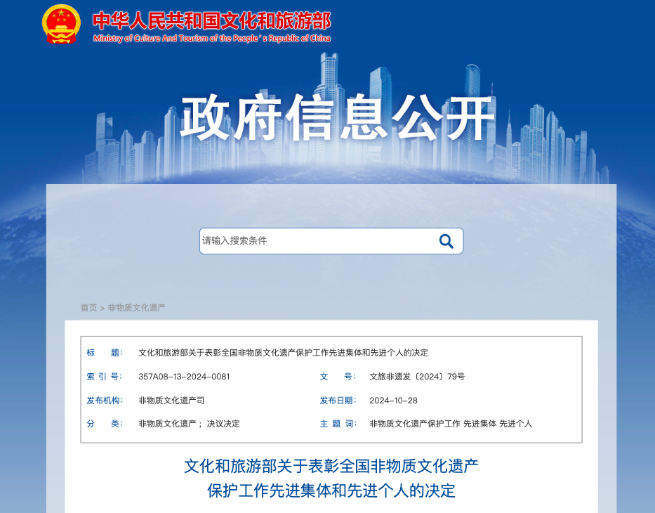10月28日,文旅部网站公布全国非物质文化遗产保护工作先进名单,武汉1家单位、2名个人榜上有名。