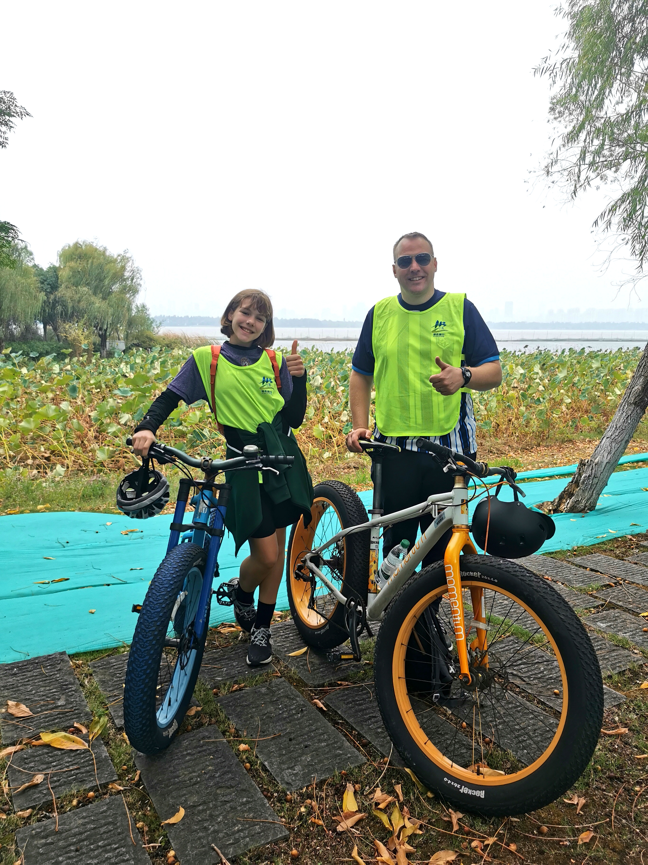 来自武汉长江外籍人员子女学校的17人外籍师生团队兴高采烈地骑完了全程。“大家都十分喜欢东湖绿道,听说有这个活动都踊跃报名参加。”美籍校长任安武说,“在沿湖绿道骑行既安全又让人心情愉悦。我家附近的后官湖以及城市中心的东湖都修建了绿道供游人骑行,就冲这点我要为武汉点赞!”