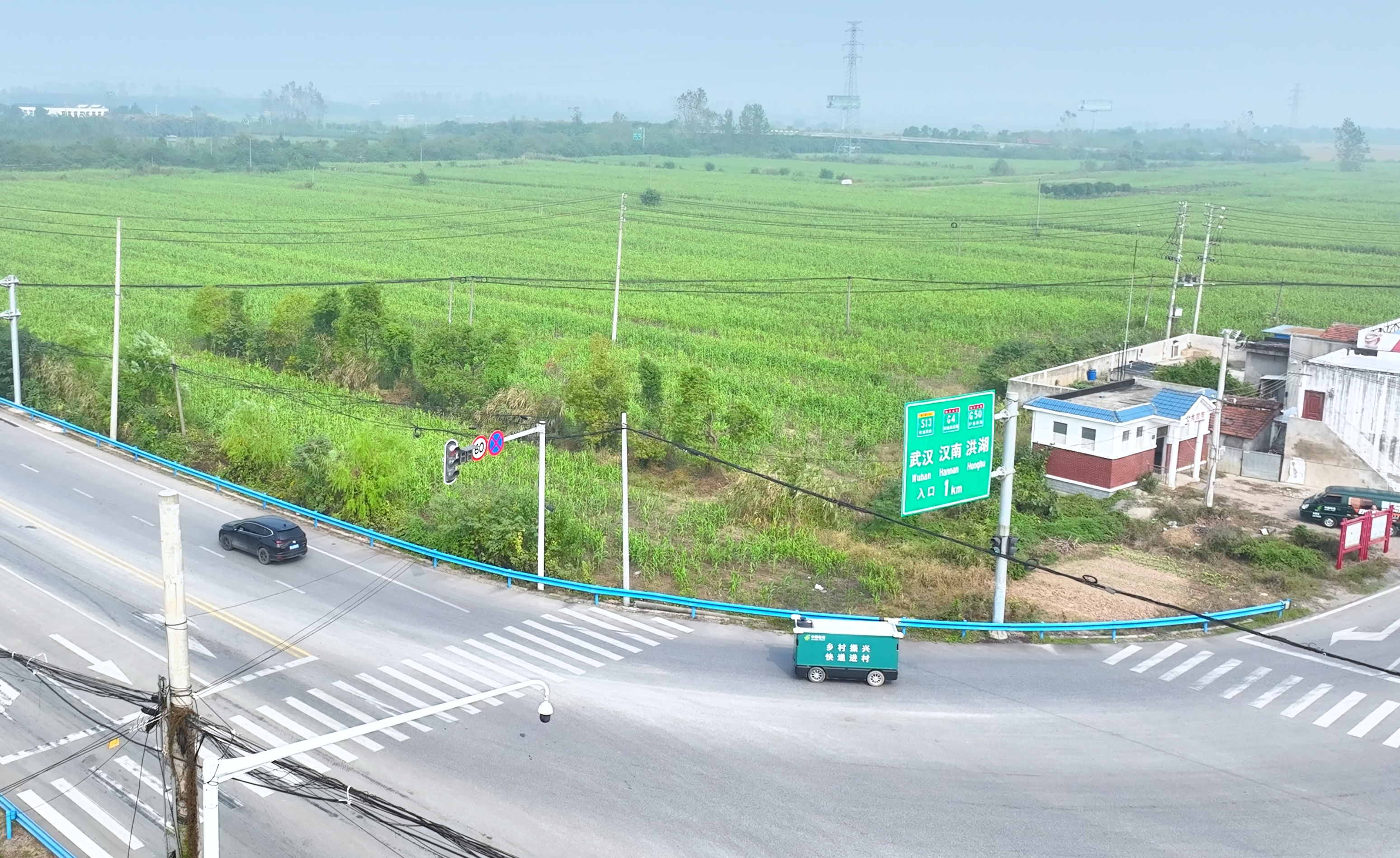 邮政无人快递车行驶在乡间。 通讯员肖芳 摄