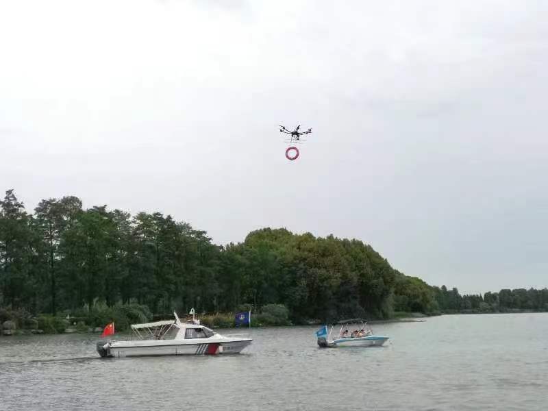 在水上综合应急演练中,东湖示范河湖智慧系统精准定位受困游船,并通过无人机施救。 通讯员供图