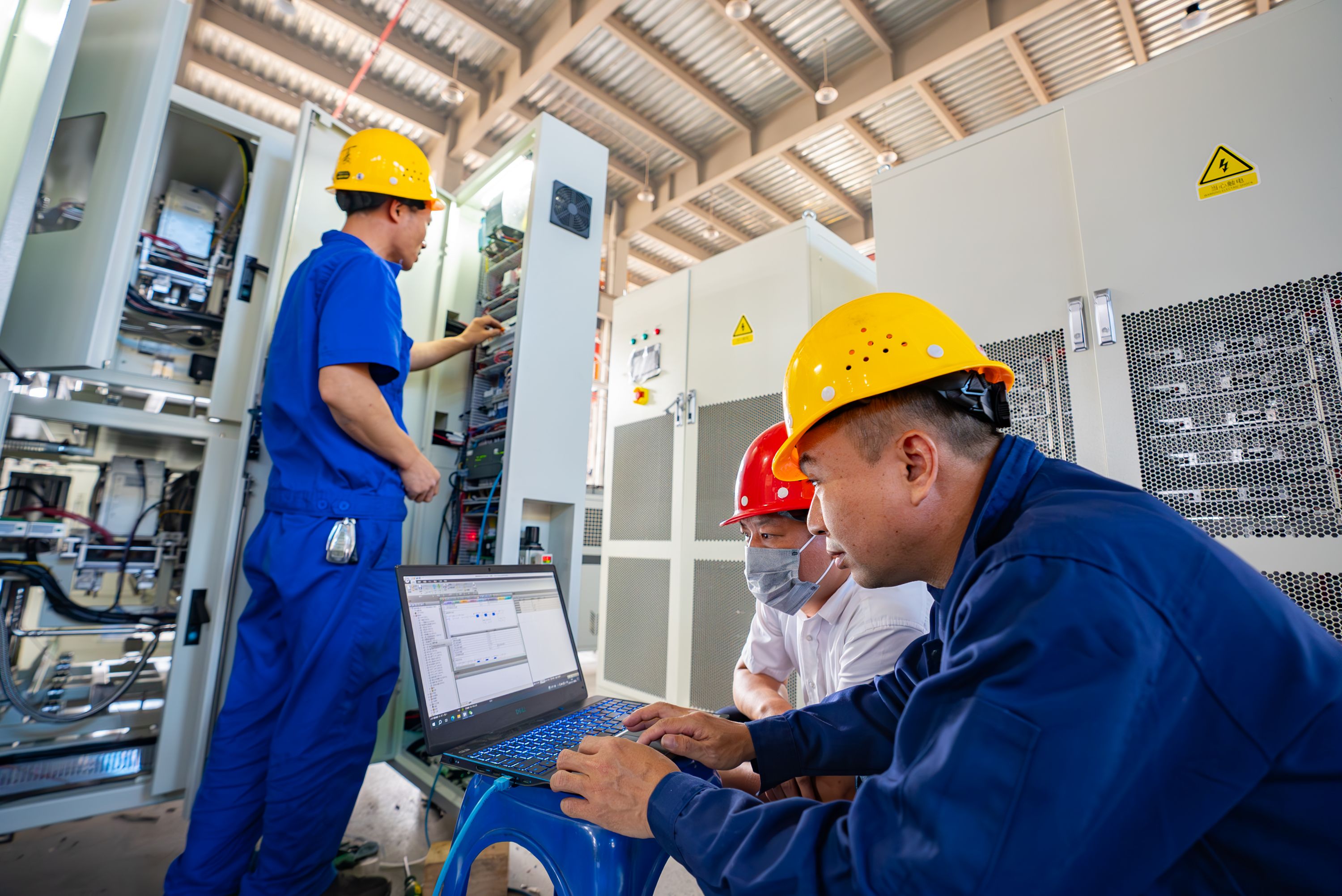 工作人员正在检测即将出厂的设备。 记者张衡 摄