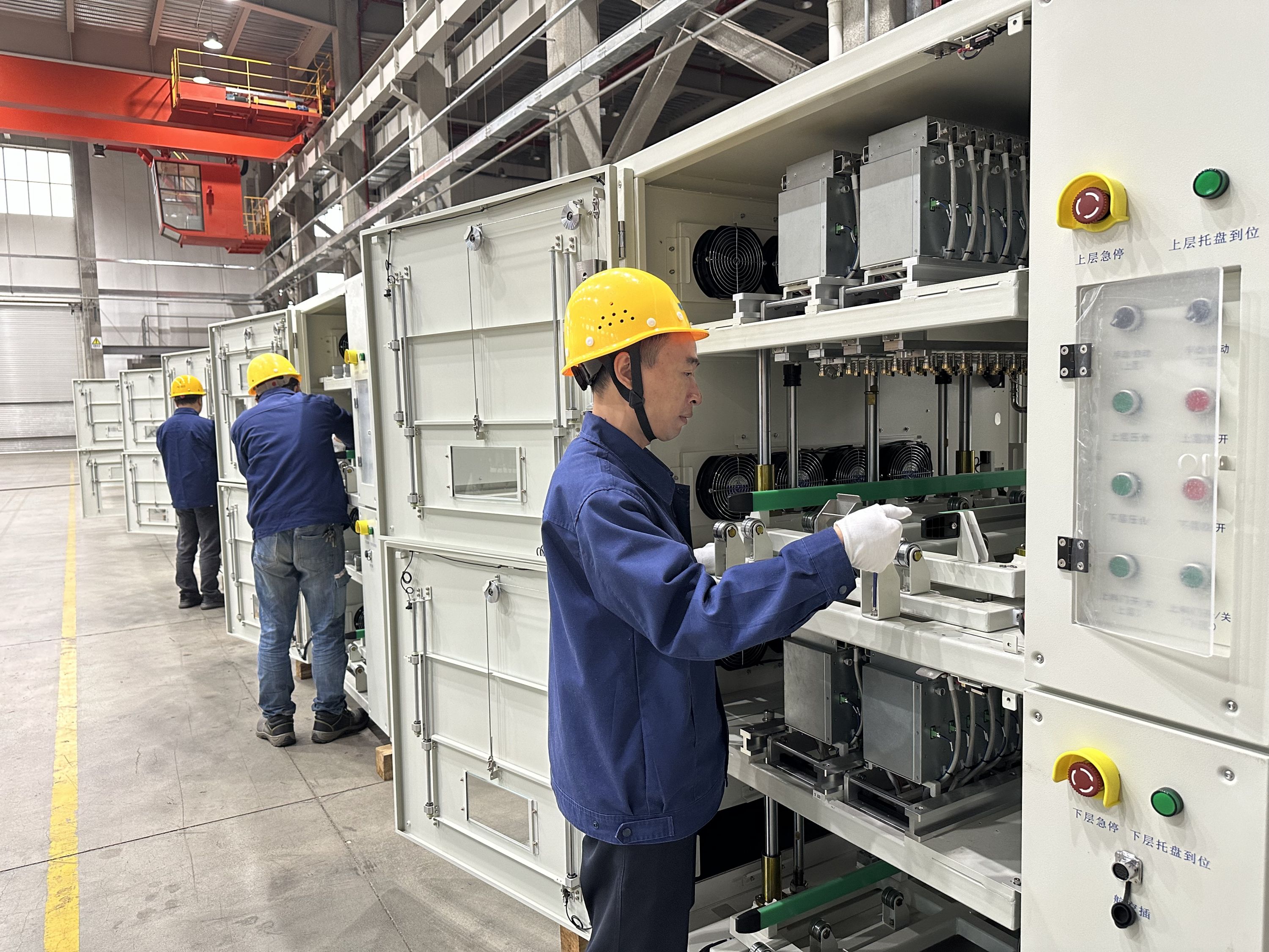 “这批设备名为容量一体机,是锂电池后段生产线的核心装备,主要用于实现电池分容工艺,也是我们出口欧盟的主力产品。”技术部门工作人员李伟介绍,这种设备不仅有一双火眼金睛,还有一颗聪明的大脑。一台设备可一次性对多组锂电池进行测试。在恒流恒压充放电过程中,通过对电池状态的实时监控,精准检测每一块电池容量情况。同时,“机器人”还会对库位环境进行控制,在物流系统的配合下实现电池的全自动生产。