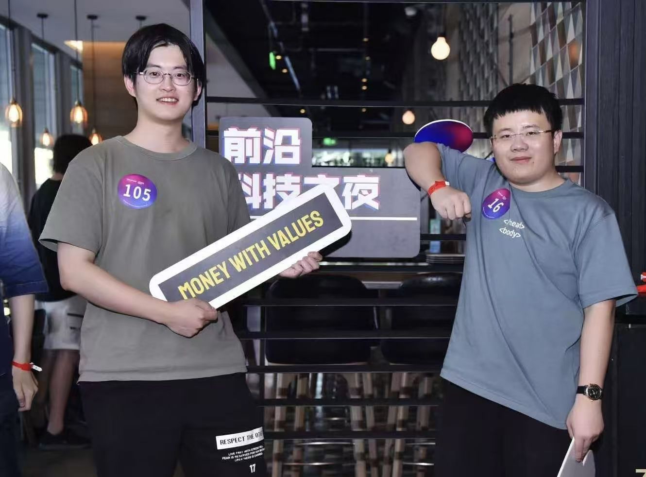 魏蓝天(右)和钱浩在创业沙龙活动上的合影。
