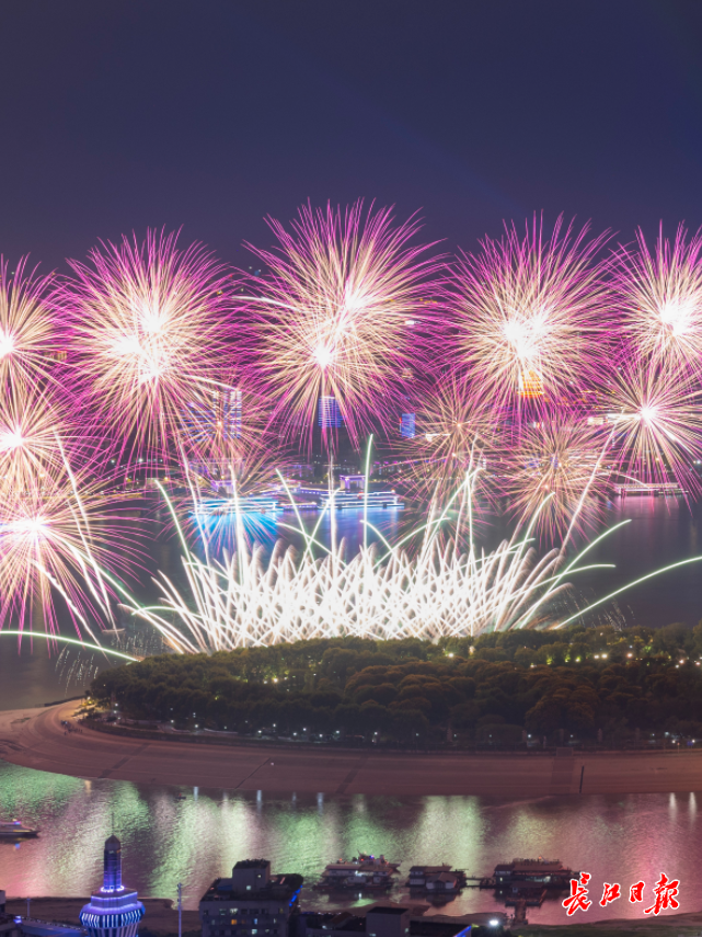 9月14日晚,长江文化艺术季在武汉开幕,两江四岸烟火秀,分外绚丽壮观。长江日报记者 胡冬冬 摄