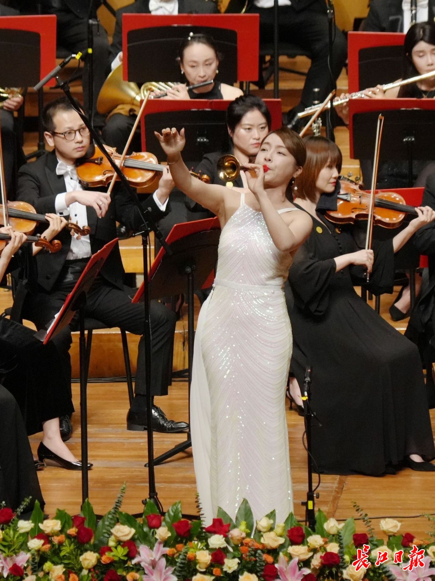 音乐会最激情的一幕,就是中国第一位唢呐女博士刘雯雯在琴台音乐厅吹奏《百鸟朝凤》,惊艳四座。