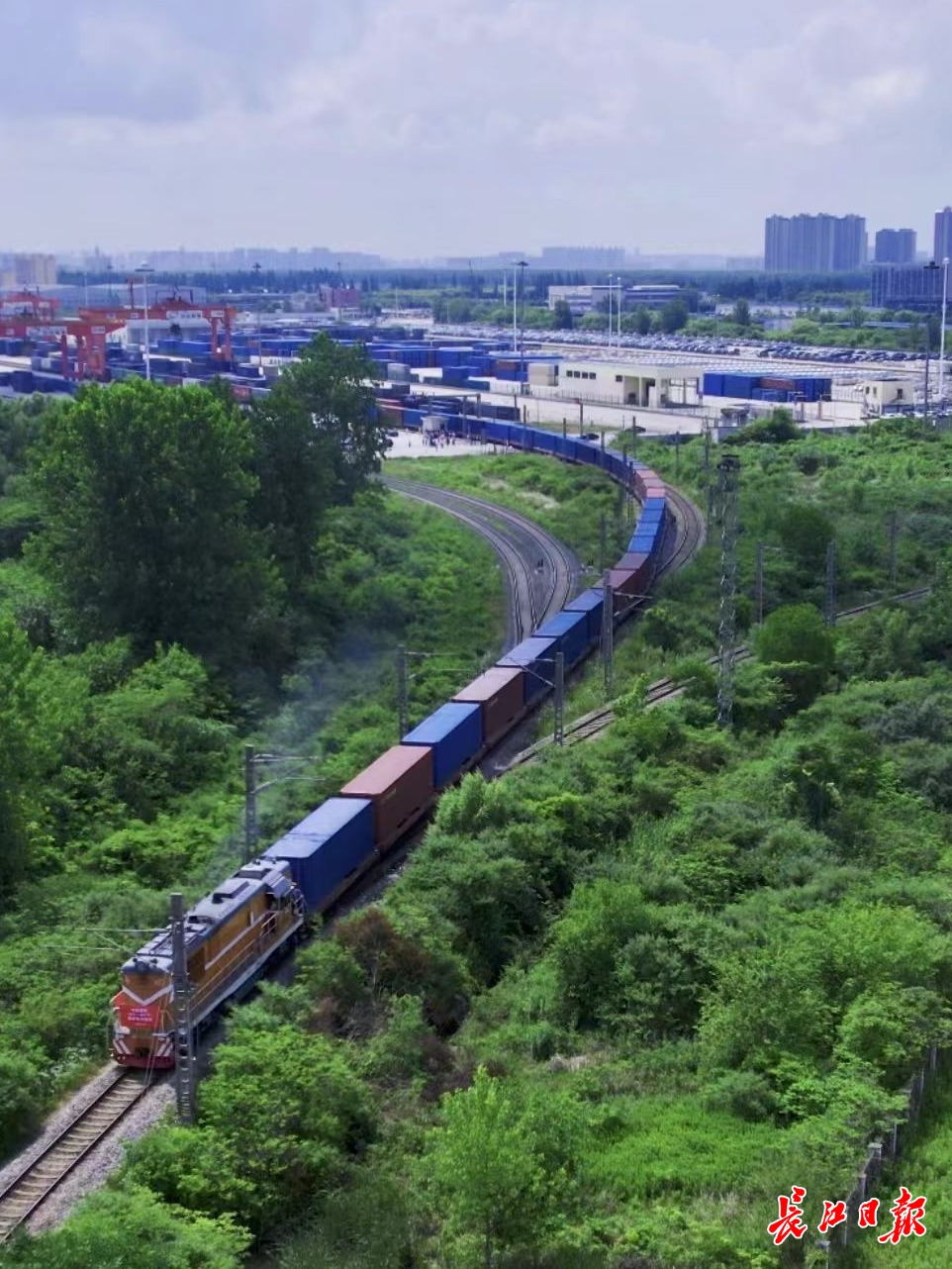 中欧班列从中铁联集武汉中心站鸣笛出发。