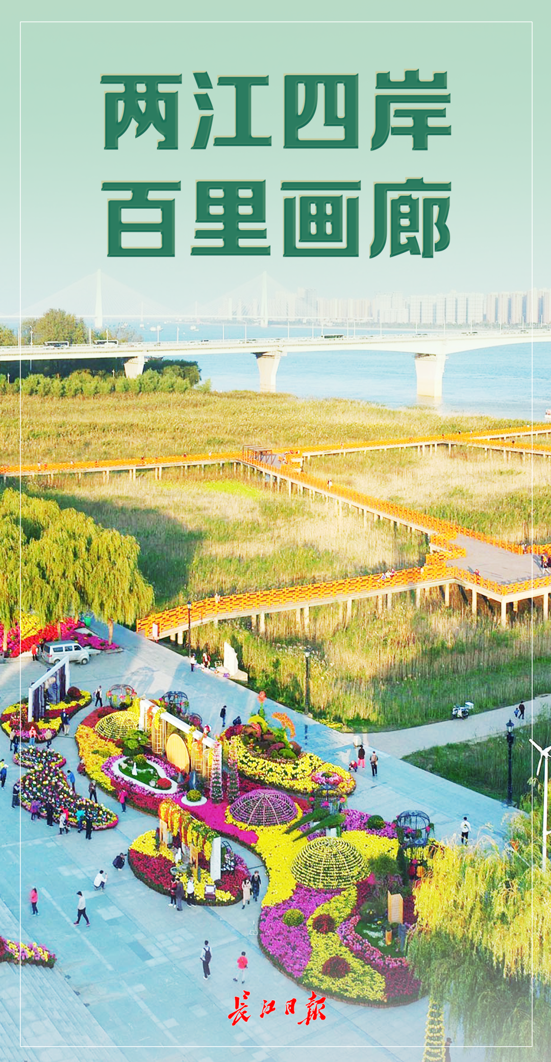 百里长江生态廊道建设将长江、汉江藏堤于岸,泼墨渲染出一幅瞰江、穿林、见花的盛景。