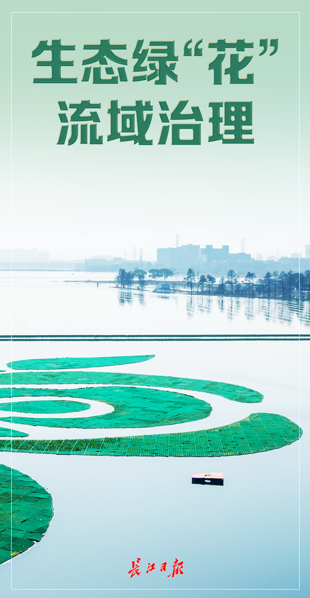 在亚洲最大城中湖——汤逊湖子湖红旗湖中央,盛放着一朵生态绿“花”。它被誉为武汉河湖治理的代表性名片之一。流域系统治理、治湖先治湾,经过多年建设,汤逊湖生态修复和水质净化初见成效,岸芷汀兰再现。