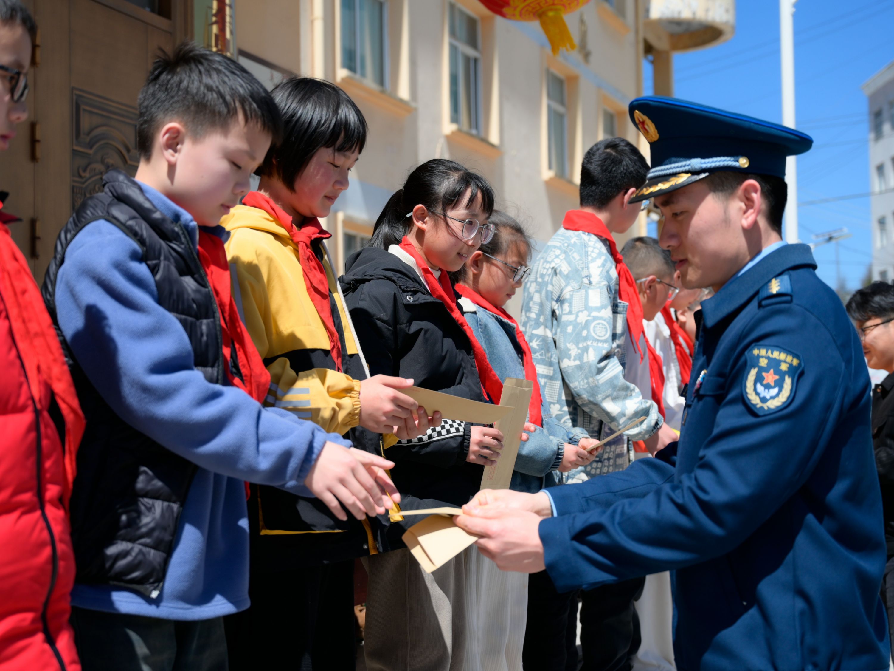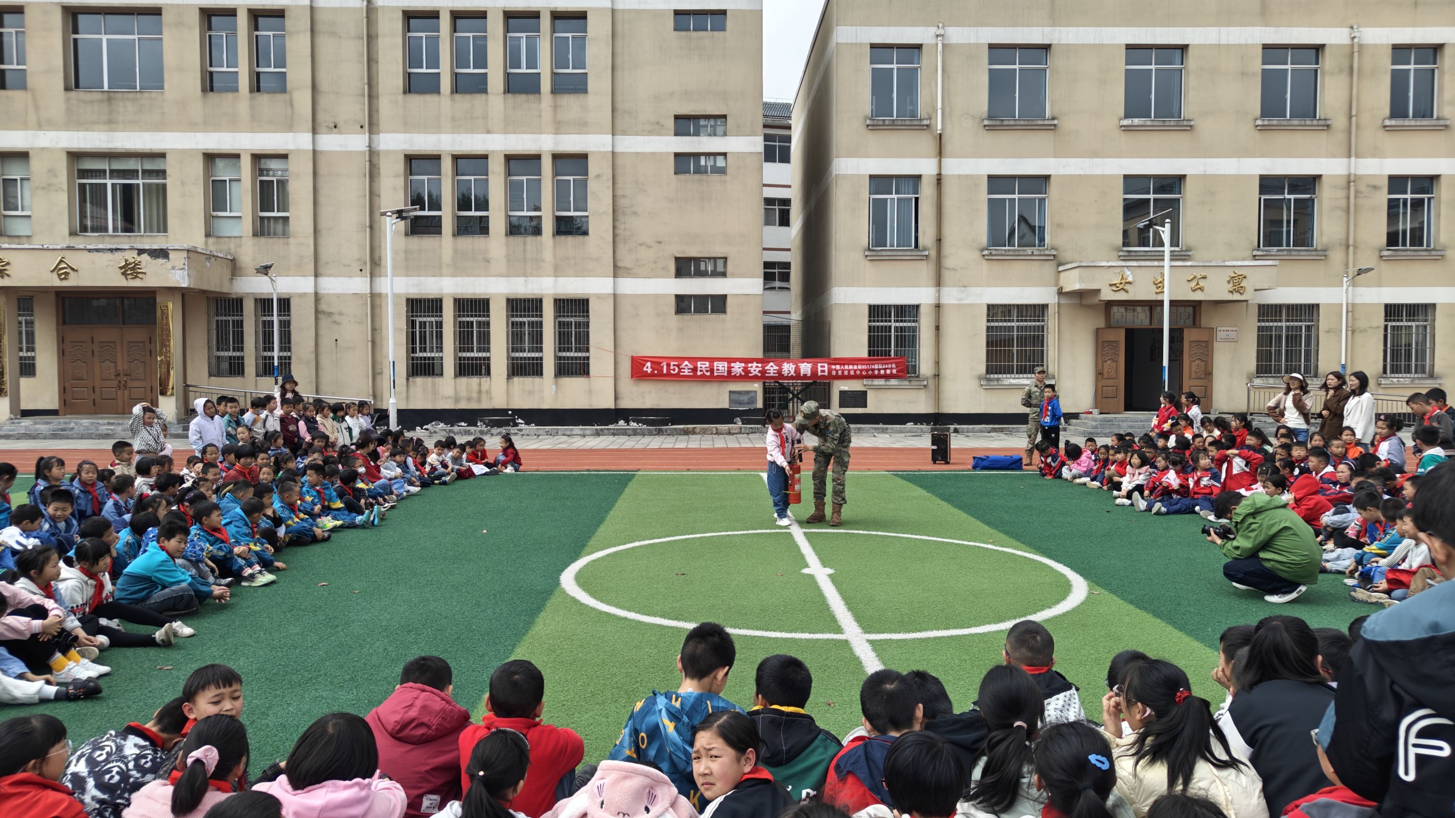 官兵组织驻地小学师生开展安全日活动。通讯员彭世杰 摄