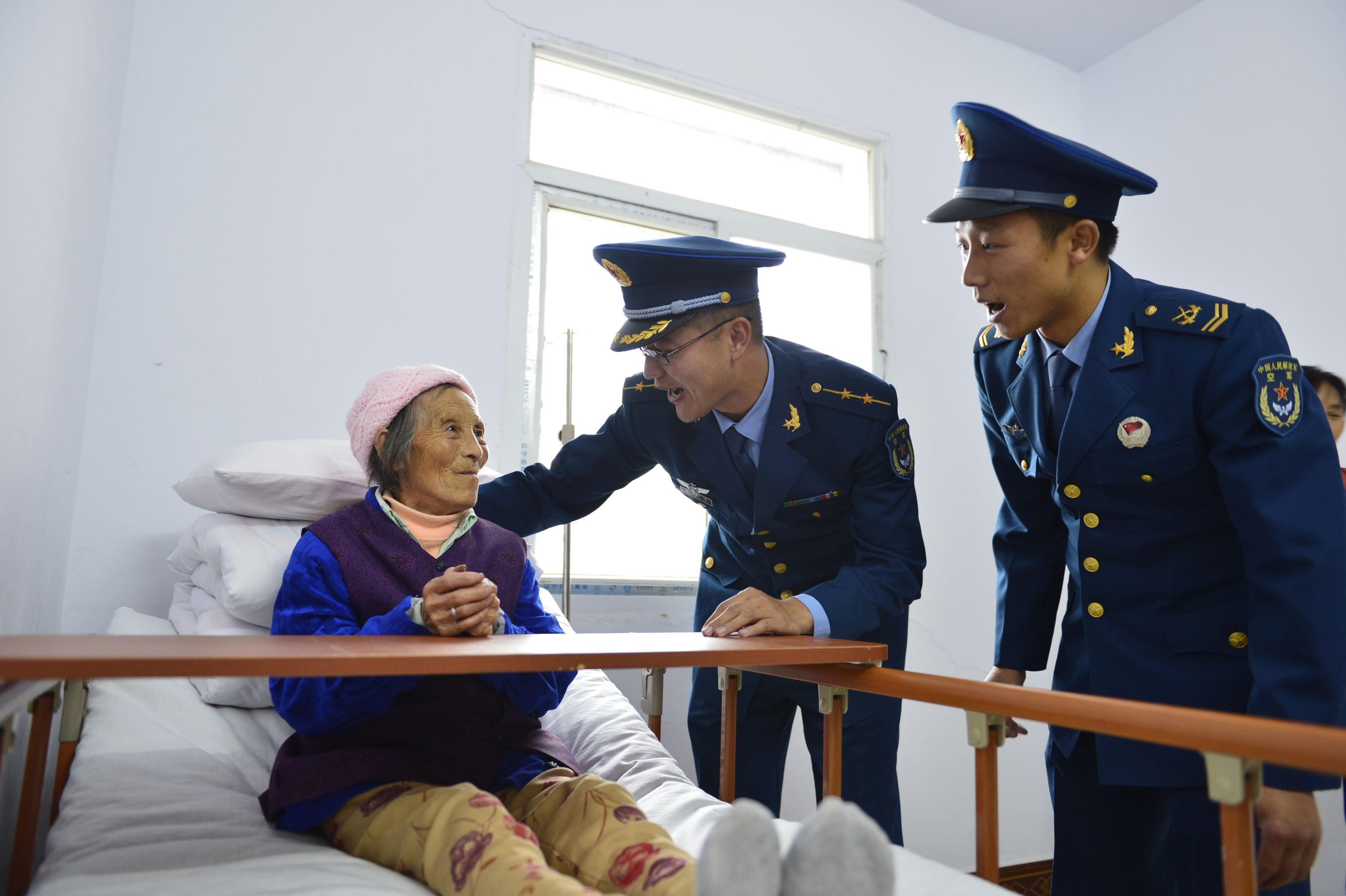 官兵到驻地福利院看望慰问老人。通讯员彭世杰 摄