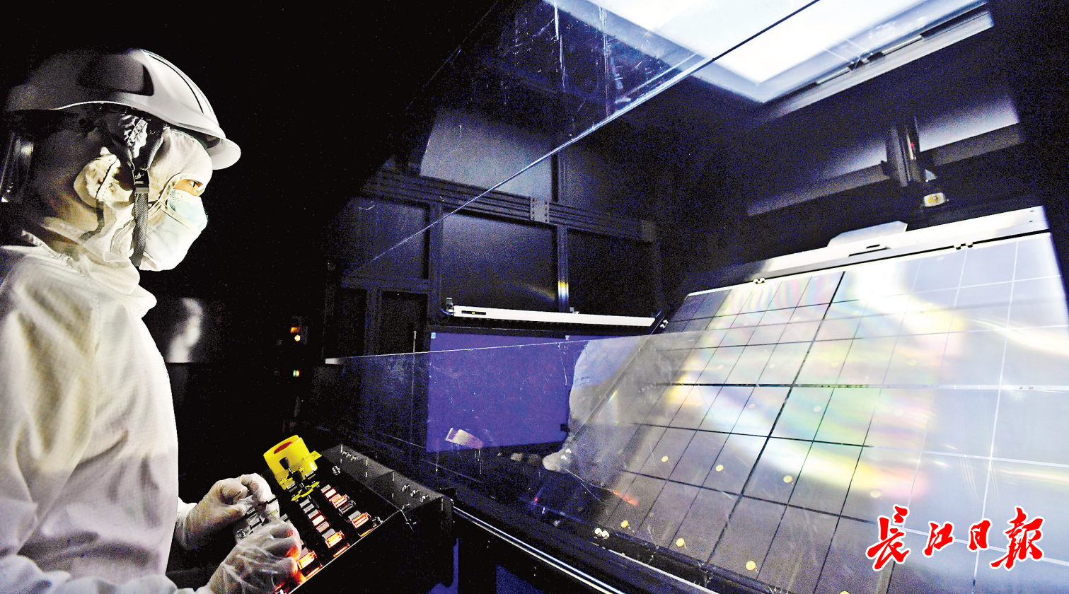 TCL华星武汉工厂无尘车间里,毫不起眼的玻璃摇身一变,成为价值千金的液晶显示屏。 周超 摄
