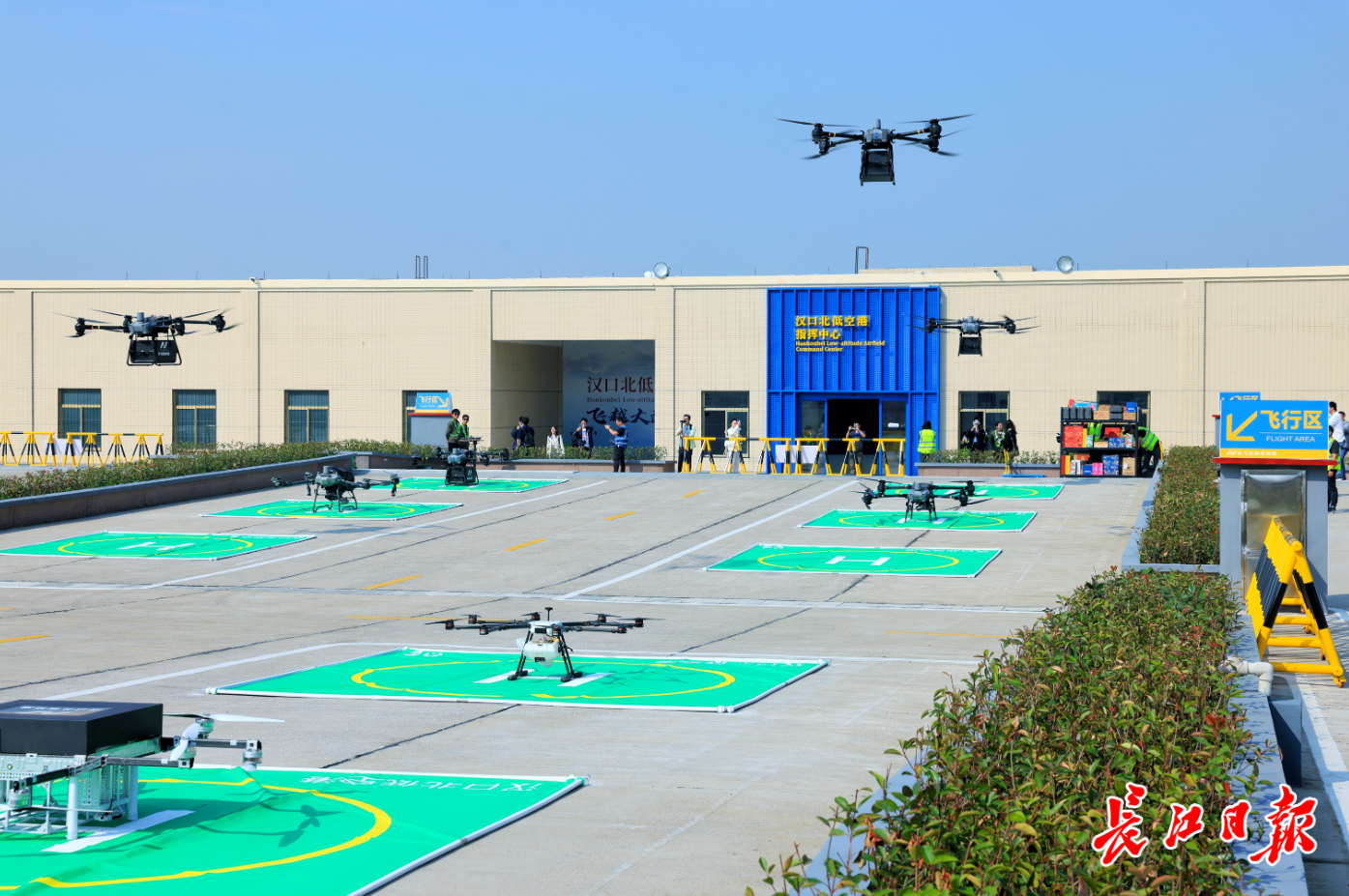 11月12日上午,随着多架无人机腾跃而起,带着订单商品飞往目的地,汉口北低空港正式启动运营。