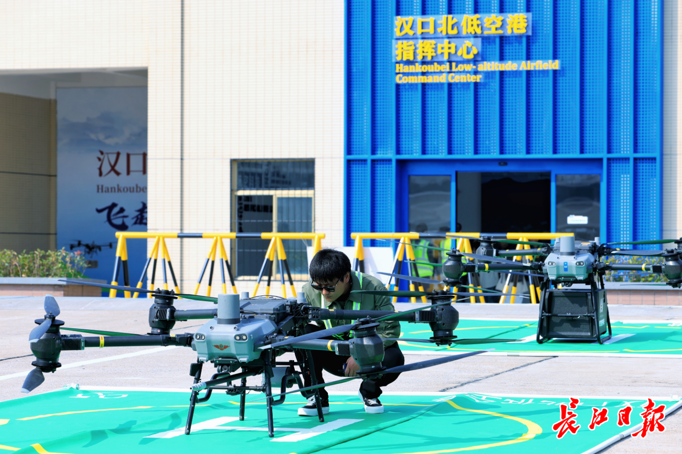 汉口北低空港无人机停机坪共有10个无人机机位,面积约一个足球场大小。