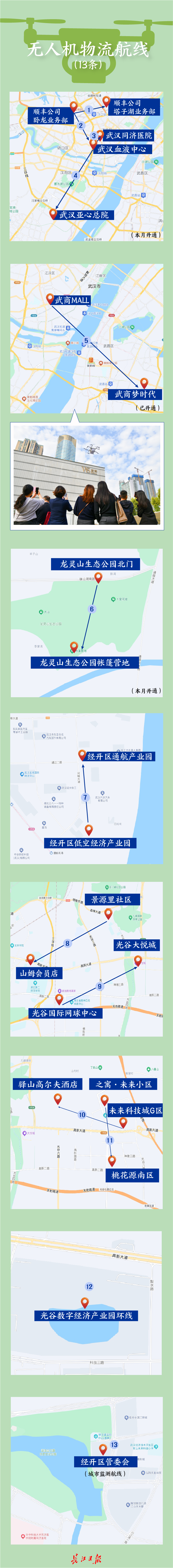 武汉经开区龙灵山生态公园北门—武汉经开区龙灵山生态公园帐篷营地,豹澥街道光谷数字经济产业园内,豹澥街道之寓·未来小区—豹澥街道桃花源南区中心草坪三条航线,主打“送快递”,把快捷服务带来寻常百姓家。