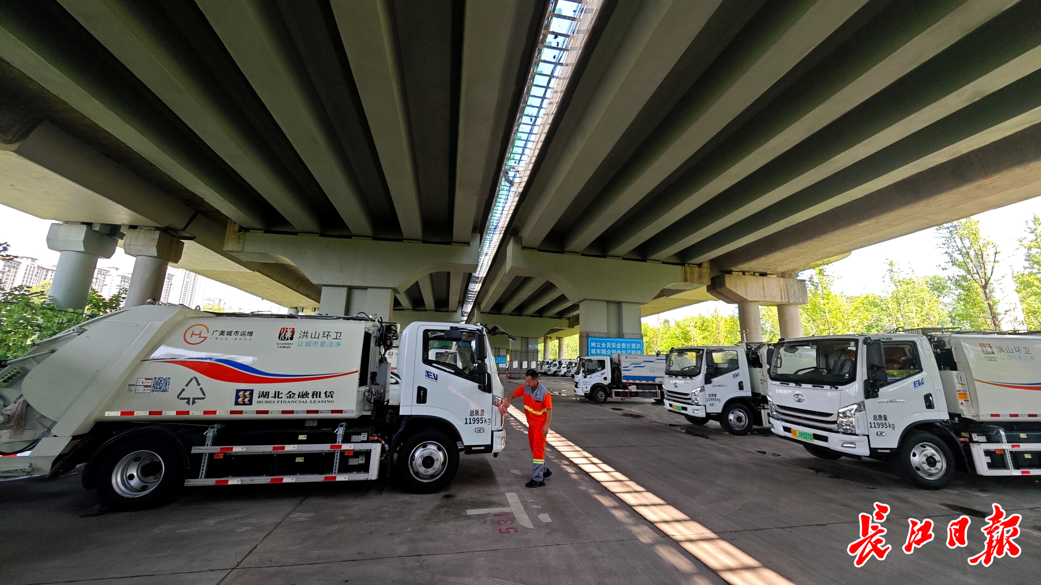 13日,在烽火路桥下环卫车辆停保场,长江日报记者看到,此次更换的新能源车辆主要为垃圾清运车和洗扫车,车辆启动轻巧快捷,还引擎声响与油烟逸出。“轻踩油门,车就发动了,运行过程没有噪声,再也不担心环卫作业时被居民抱怨声响太大了。”正在冲洗车辆的司机龚师傅说道。