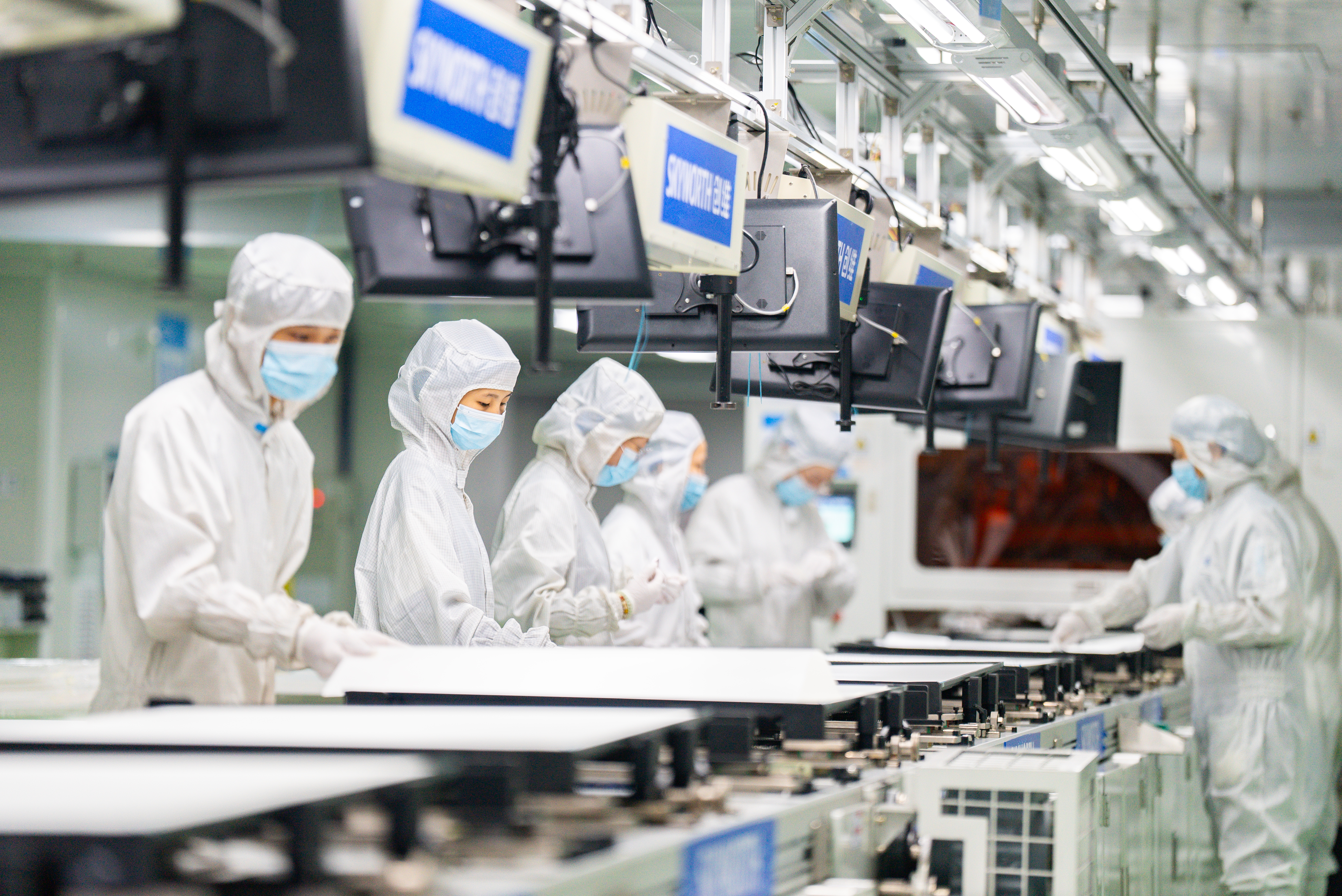 创维武汉工厂工作人员在无尘车间内作业。通讯员晏君 摄
