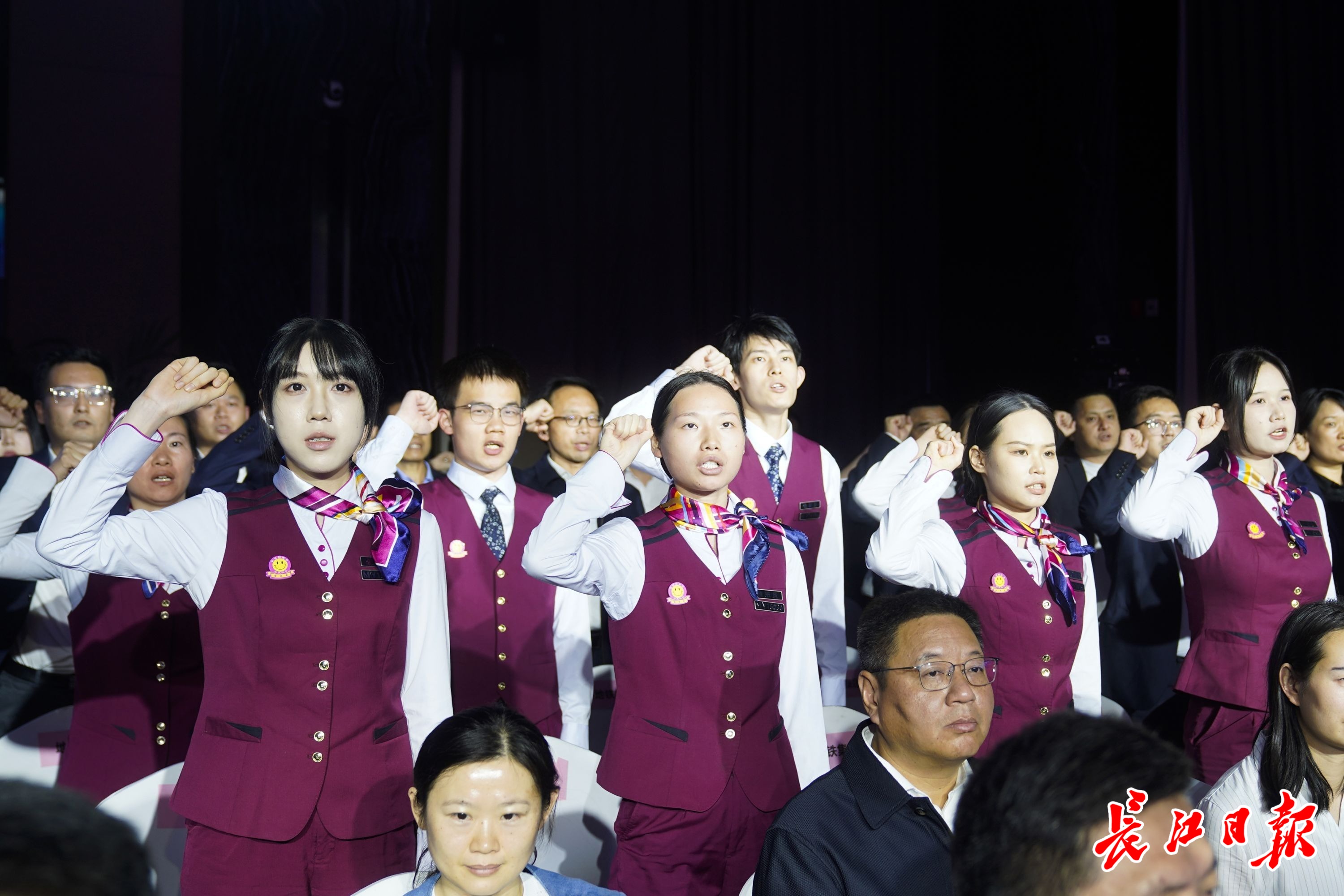 报告会现场,武汉交通人集体宣誓。长江日报记者彭年 摄