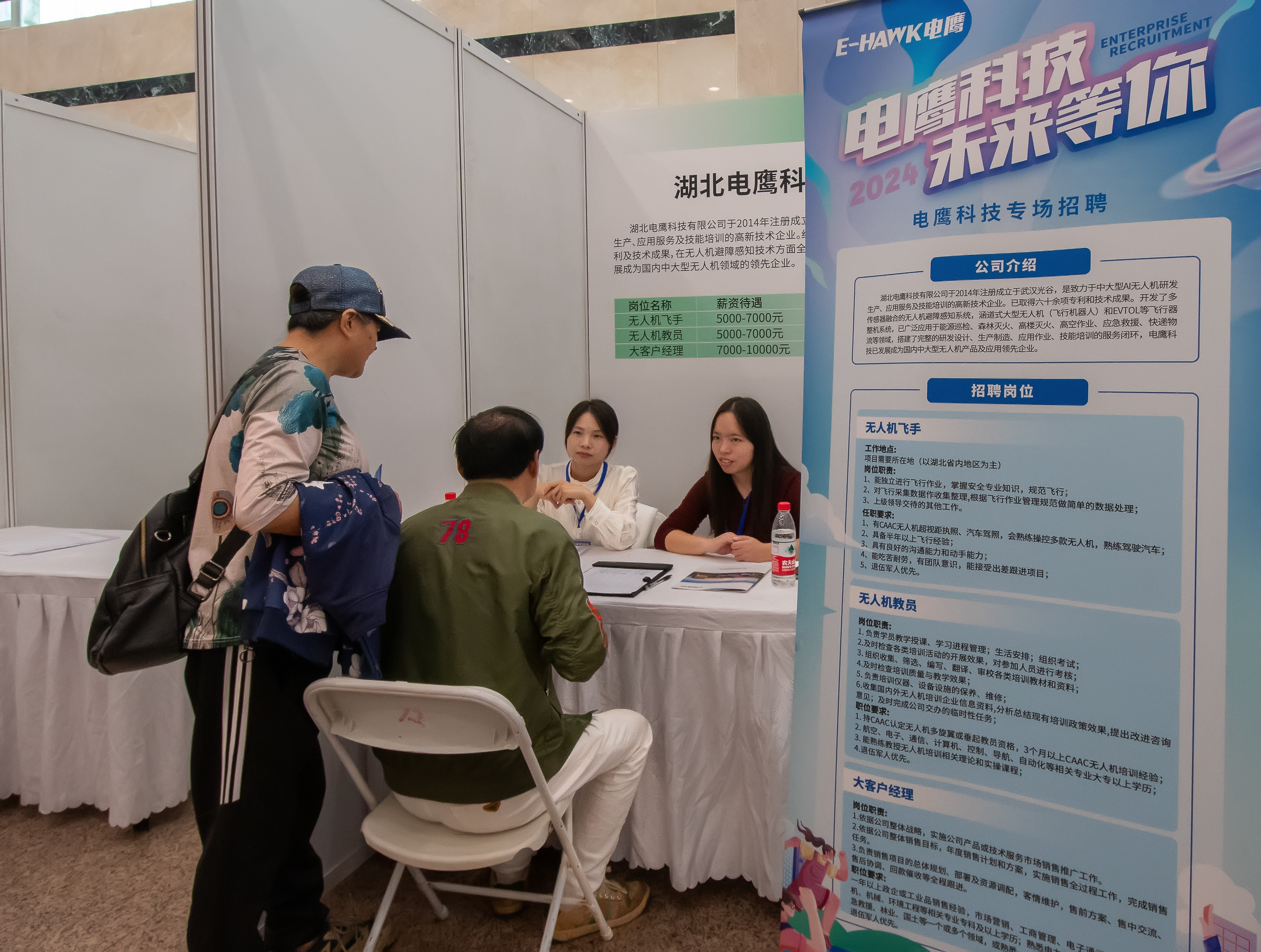 该公司是湖北省无人机行业协会会长单位,公司已取得50项专利和技术成果。了解到公司背景和无人机“飞手”、无人机教员的岗位前景后,不少退役军人递上简历,坐下面谈。