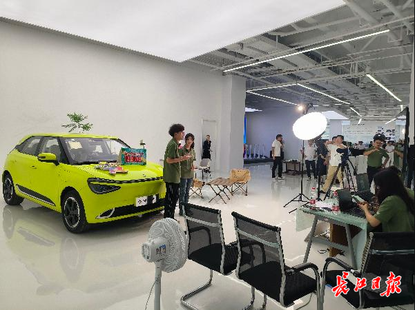 东风汽车商城直播中心启用,主播现场直播卖车。记者徐丹 摄