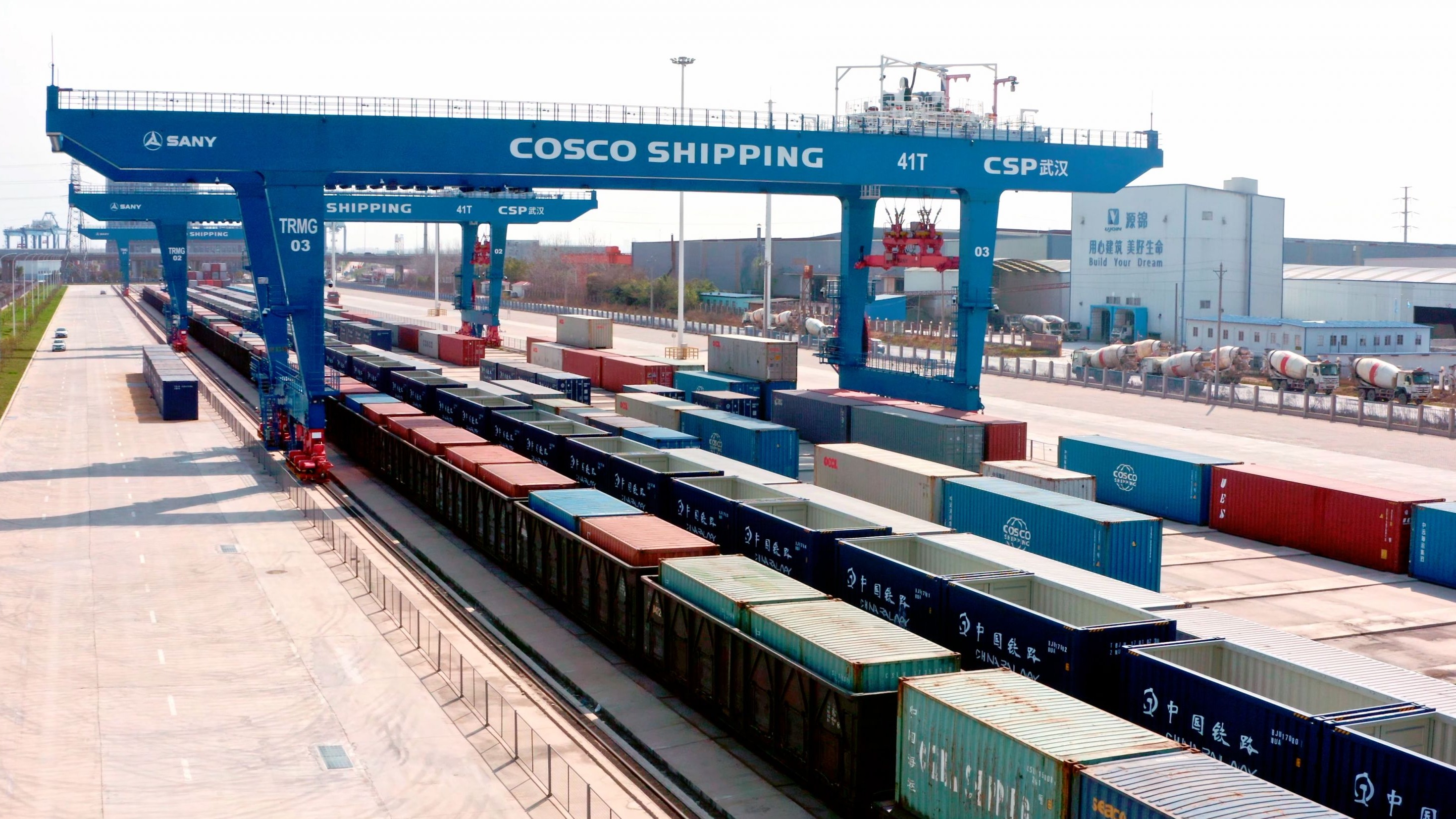 武汉中远海运码头铁水联运作业现场。通讯员供图