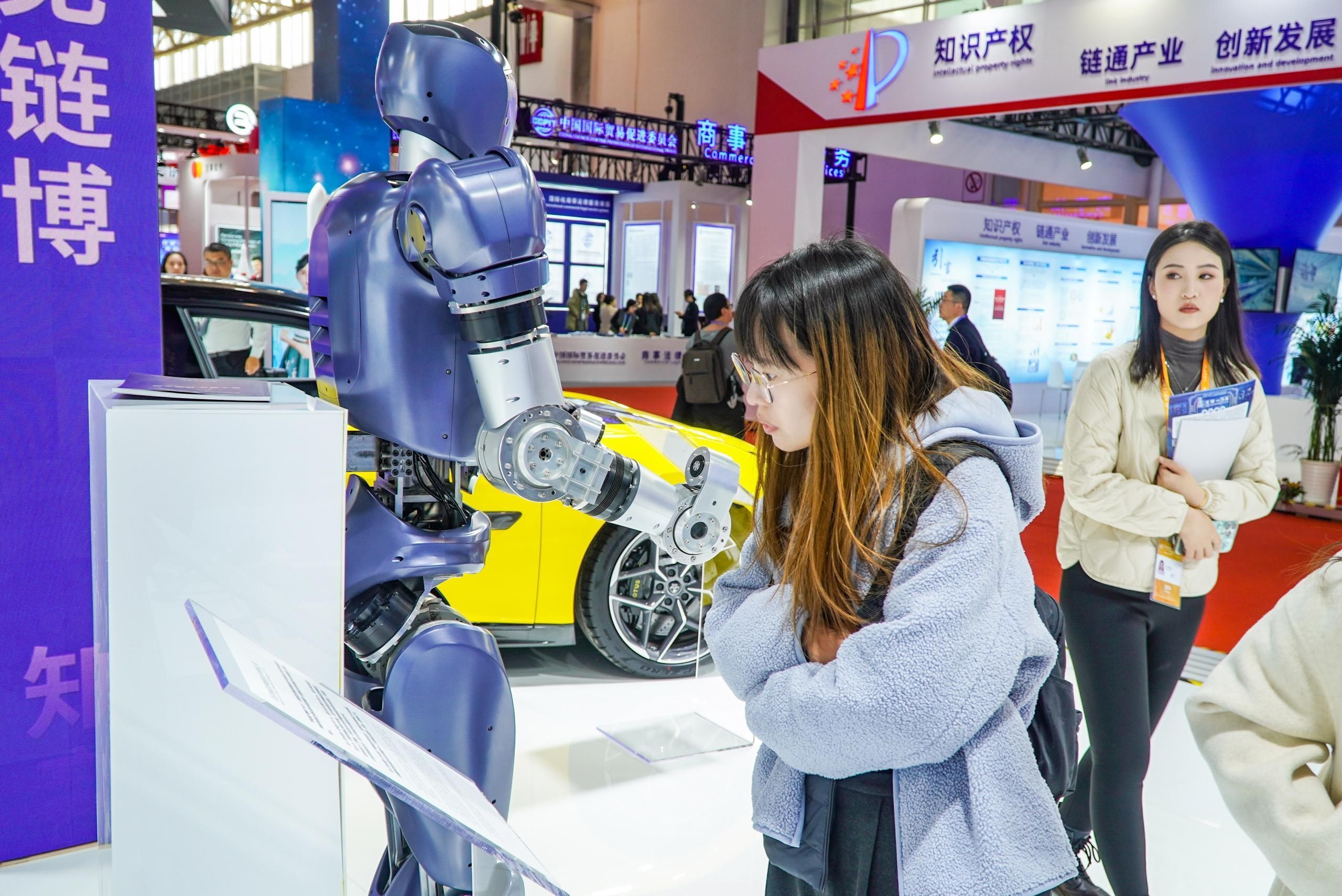 湖北展区的人形机器人吸引观众驻足。 夏俊俊 摄