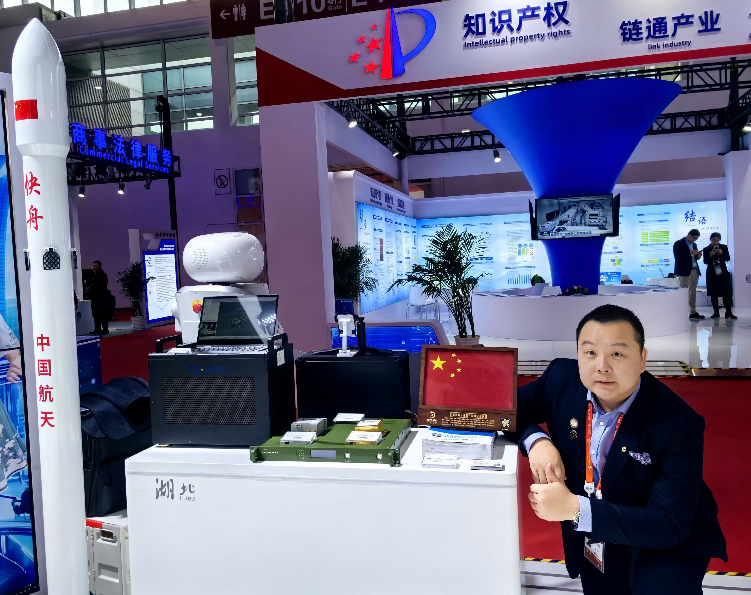 嫦娥六号任务月面展示国旗亮相链博会湖北馆。夏俊俊 摄