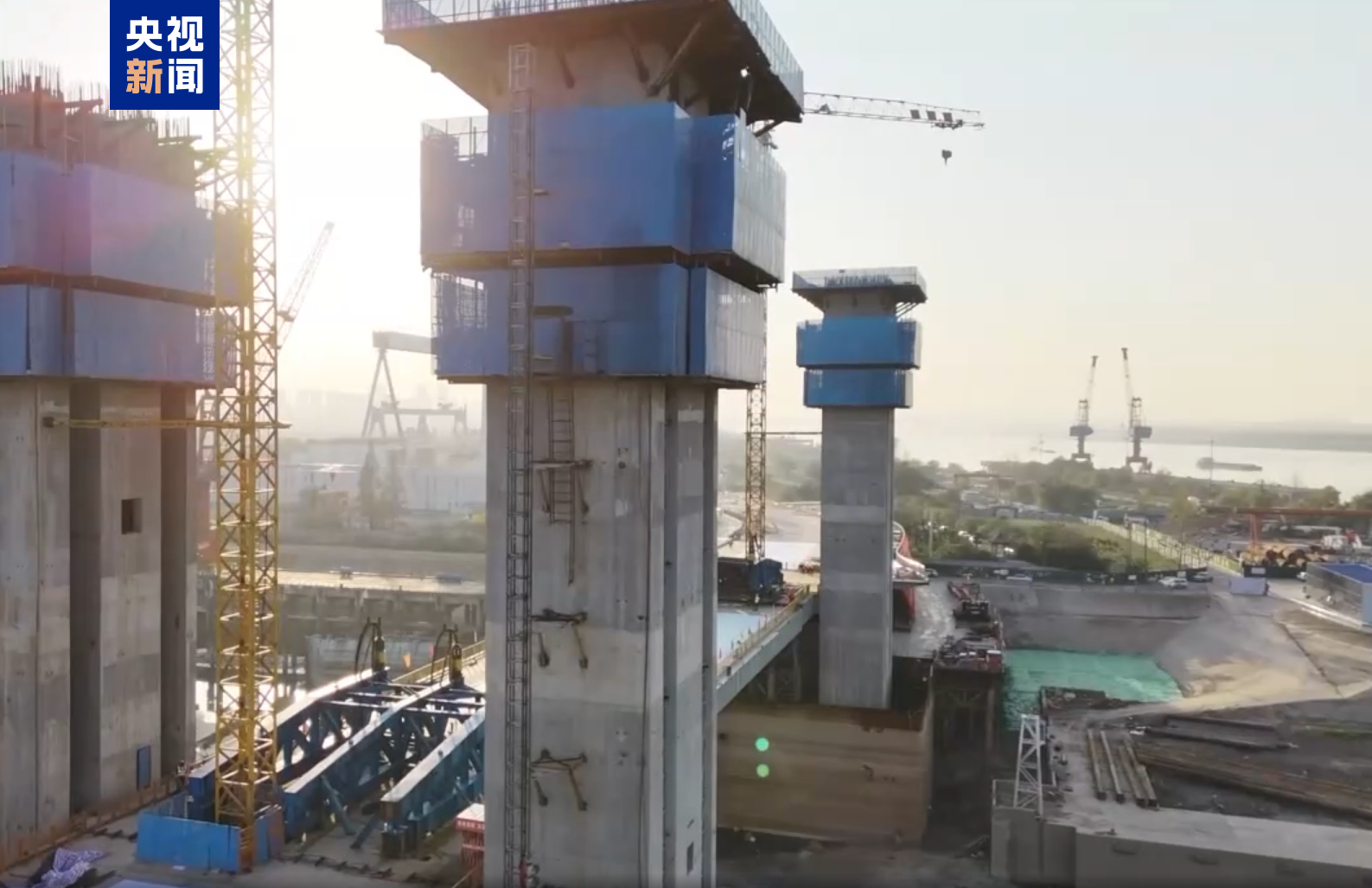 据了解,右岸大道全桥总长734.5米,其中开启桥可升降部分全长104米,塔柱处断面宽46.2米,最大可提升27米,提升重量为2650吨,这四项数据在桥梁建成后,将于同类型开启桥梁中领跑亚洲。