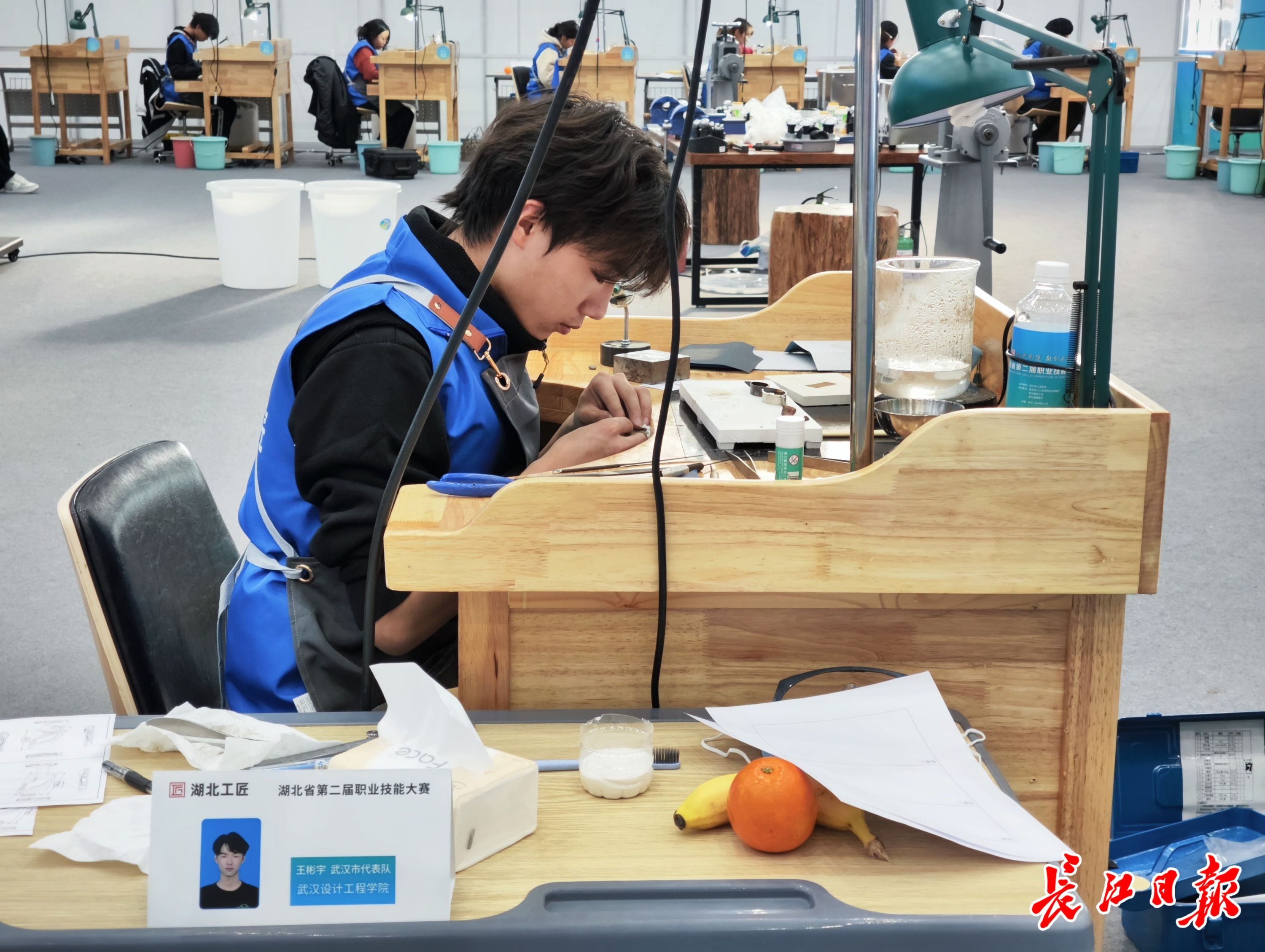 本次大赛的赛题是《薪火相传》,一个完整作品由两个模块构成,在十三个半小时内,选手需使用既定材料和工具完成设计与制作。记者现场了解到,该赛项的评分标准非常严格,具体分为“与图纸相似程度”“锯切-镂空-打孔”“焊接”“表面处理”“设计模块”“尺寸”“完成用时”等七大类、40多个小分。