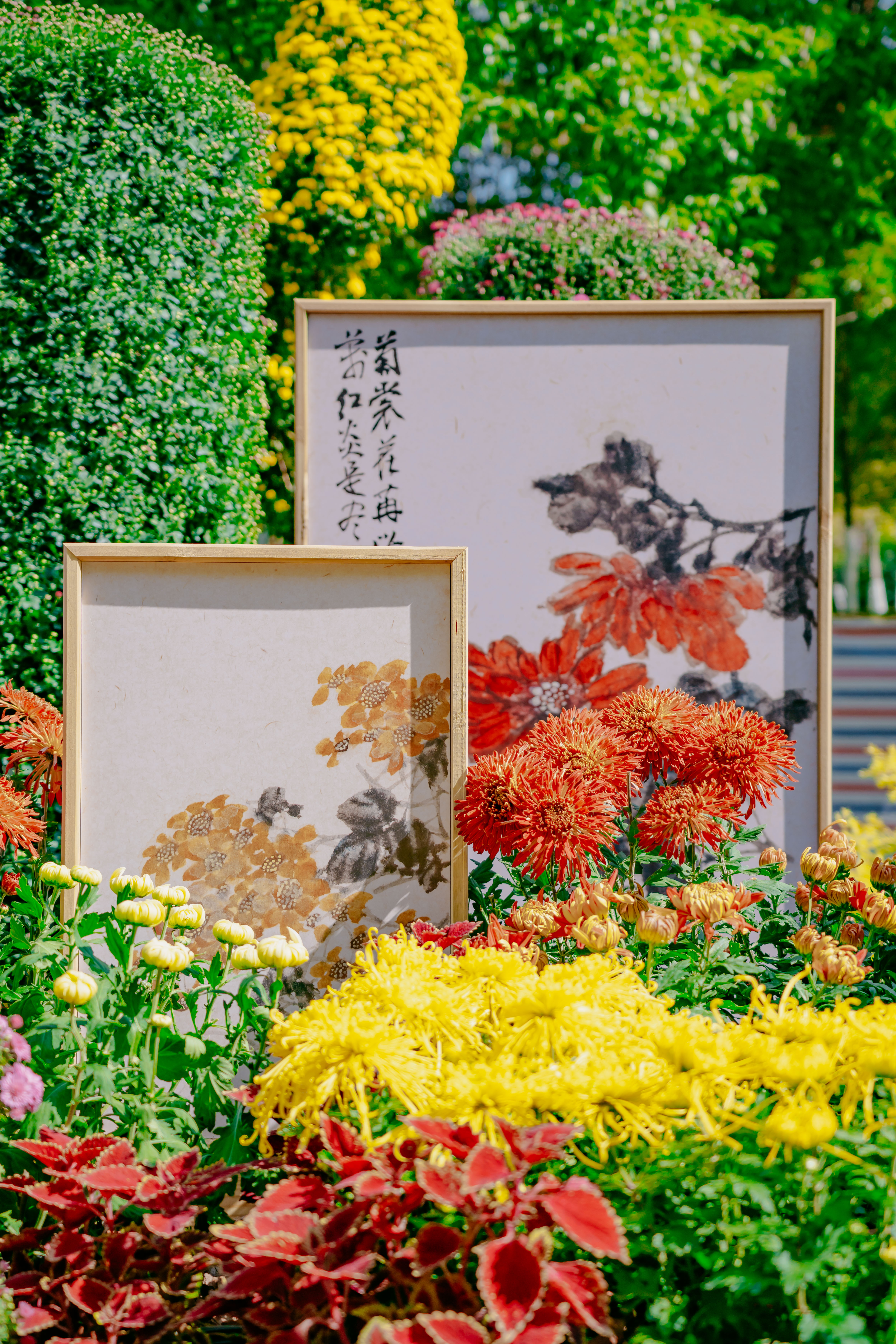 金秋菊展沙湖公园主展区花与画。琚珺珂 摄