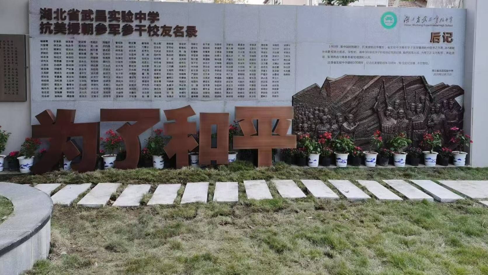 湖北省实验中学校门旁的抗美援朝纪念墙。
