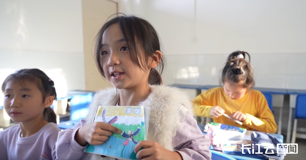 “老师,我觉得这里不太像透明的地方!”在咸宁崇阳县马桥村的一间教室里,同学们关于怎么画出透明翅膀的疑问正通过一根网线传输给县城实验小学的美术老师,经过实时的视频教学,王梓怡和同学们都完成了满意的作品,她开心地告诉长江云新闻记者,这是她最喜欢的课程,基本每天都能上。