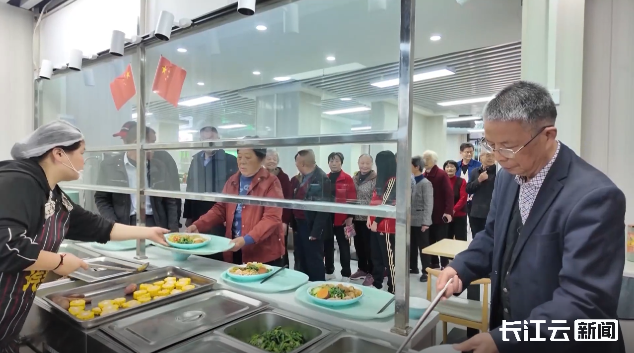 在黄冈红安县北门岗社区“邻里食光”幸福食堂里,老人们陆续前来吃午饭,只需要几块钱,就能吃到热乎可口的饭菜,这让他们忍不住点赞:“合口味!这才符合我们年纪大的人的口味!”