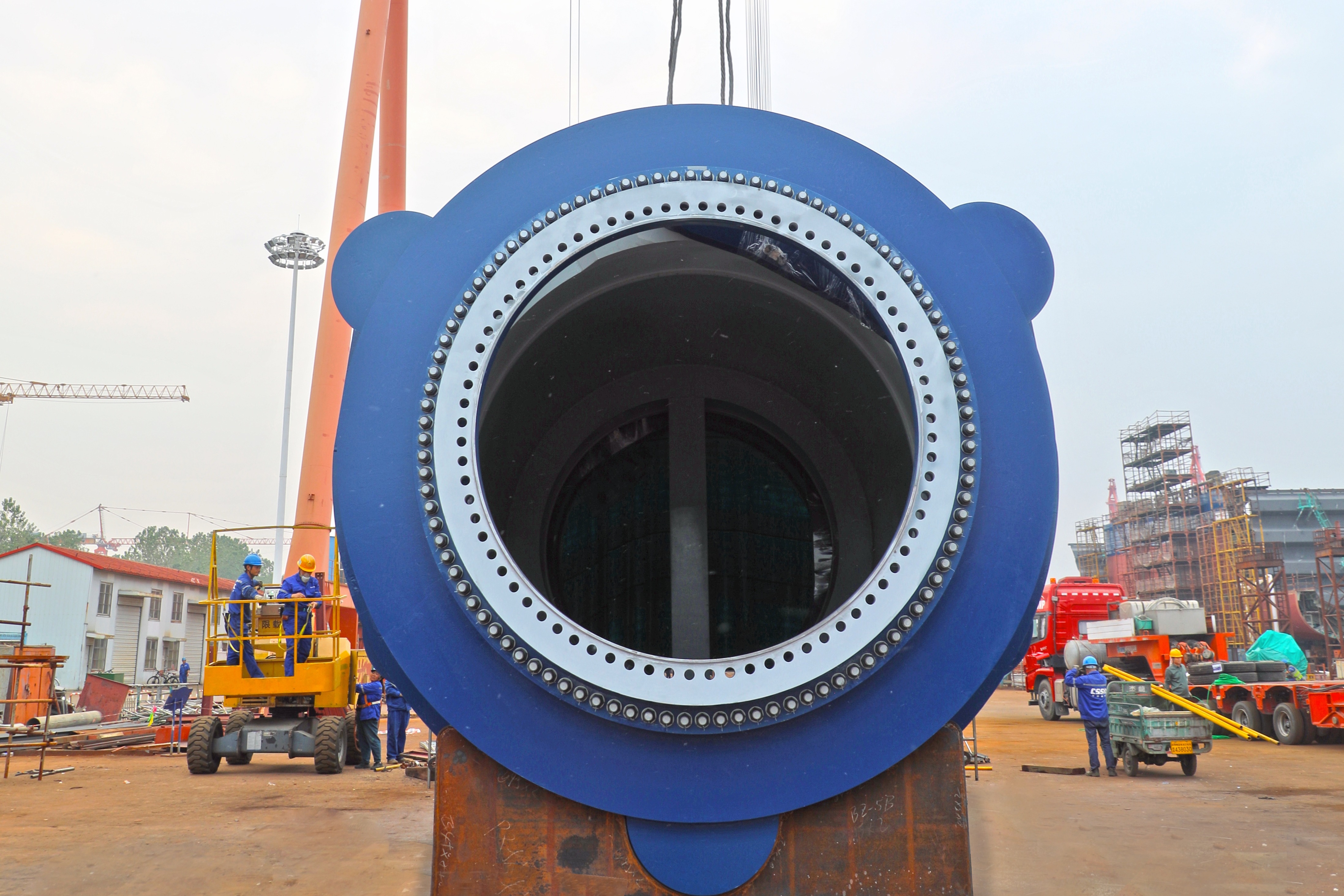 近日,长13米、直径5.6米、重200吨的全球最大海上风电全尺寸地面试验平台联轴器,运抵位于福建省福清市的国家级海上风电研究与试验检测基地,这标志着具有世界领先水平的我国首个国家级海上风电研究与试验检测基地建设取得关键性突破。该基地最大的海上风电全尺寸地面试验平台核心设备大件运输全部完成,进入设备安装调试最后冲刺阶段。武昌造船完工发运的联轴器是风电地面试验平台的核心设备。