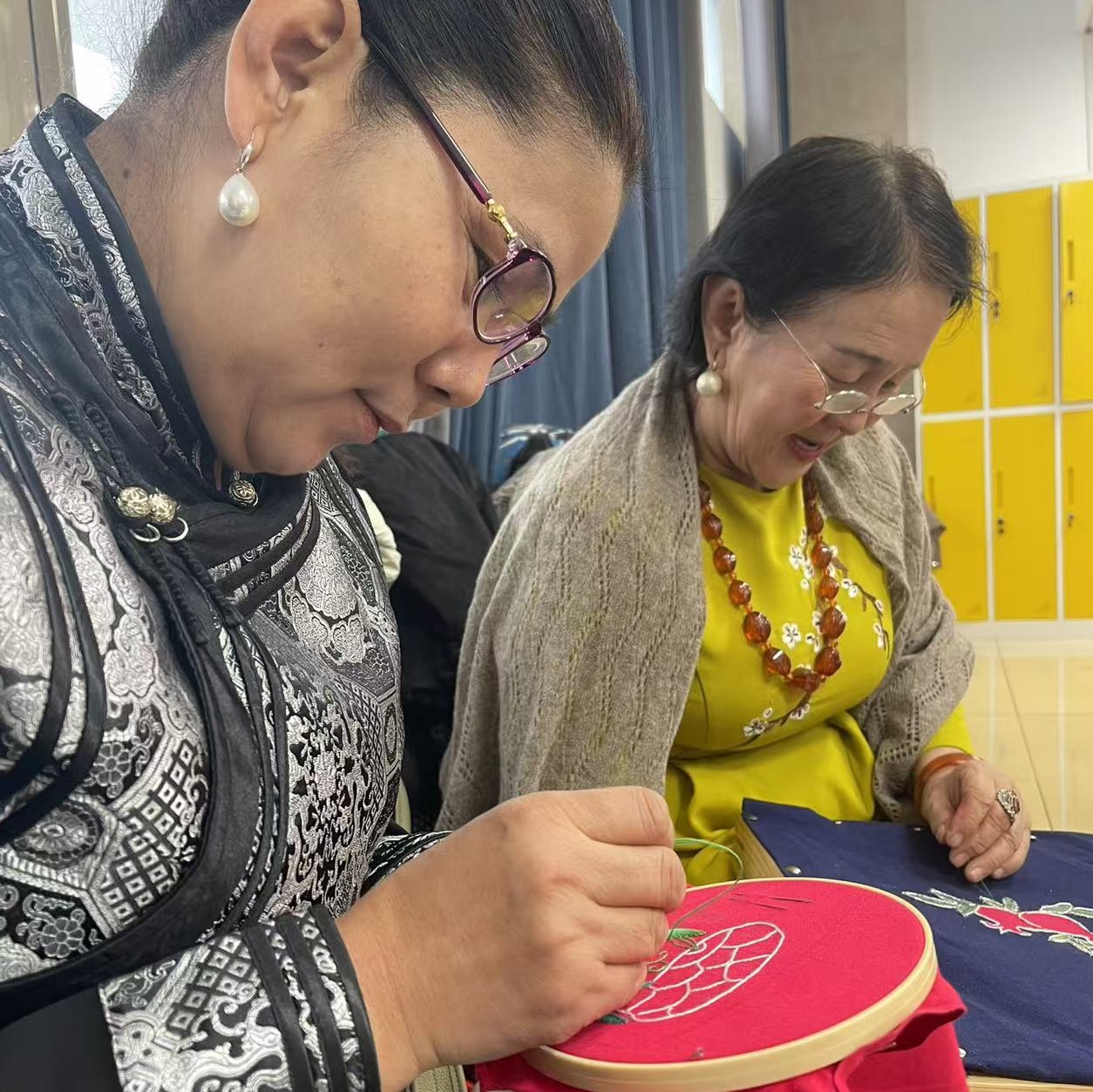 “我们两个民族的手艺有相通之处。”经过三年的学习,巴衣尔已颇有心得,“比如蒙古族刺绣和汉族刺绣的针法基本相似,但蒙古族绣法自由粗犷,汉绣则细腻有层次。”