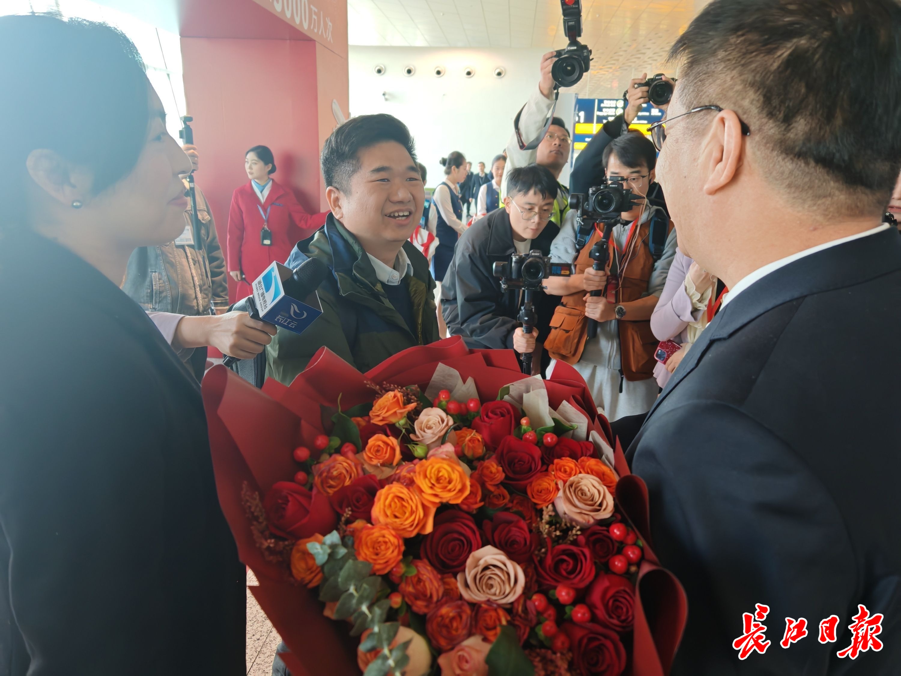 武汉籍旅客黄先生成为今年天河机场迎送的第3000万名旅客。
