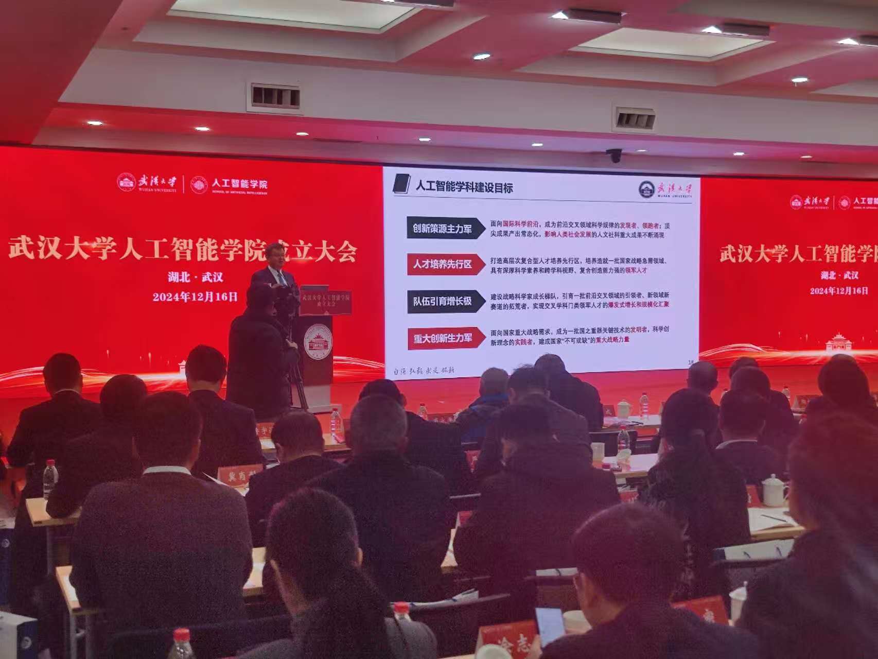 武汉大学人工智能学院正式成立,武汉大学张平文院士作学院发展报告。长江日报记者汪洋 摄