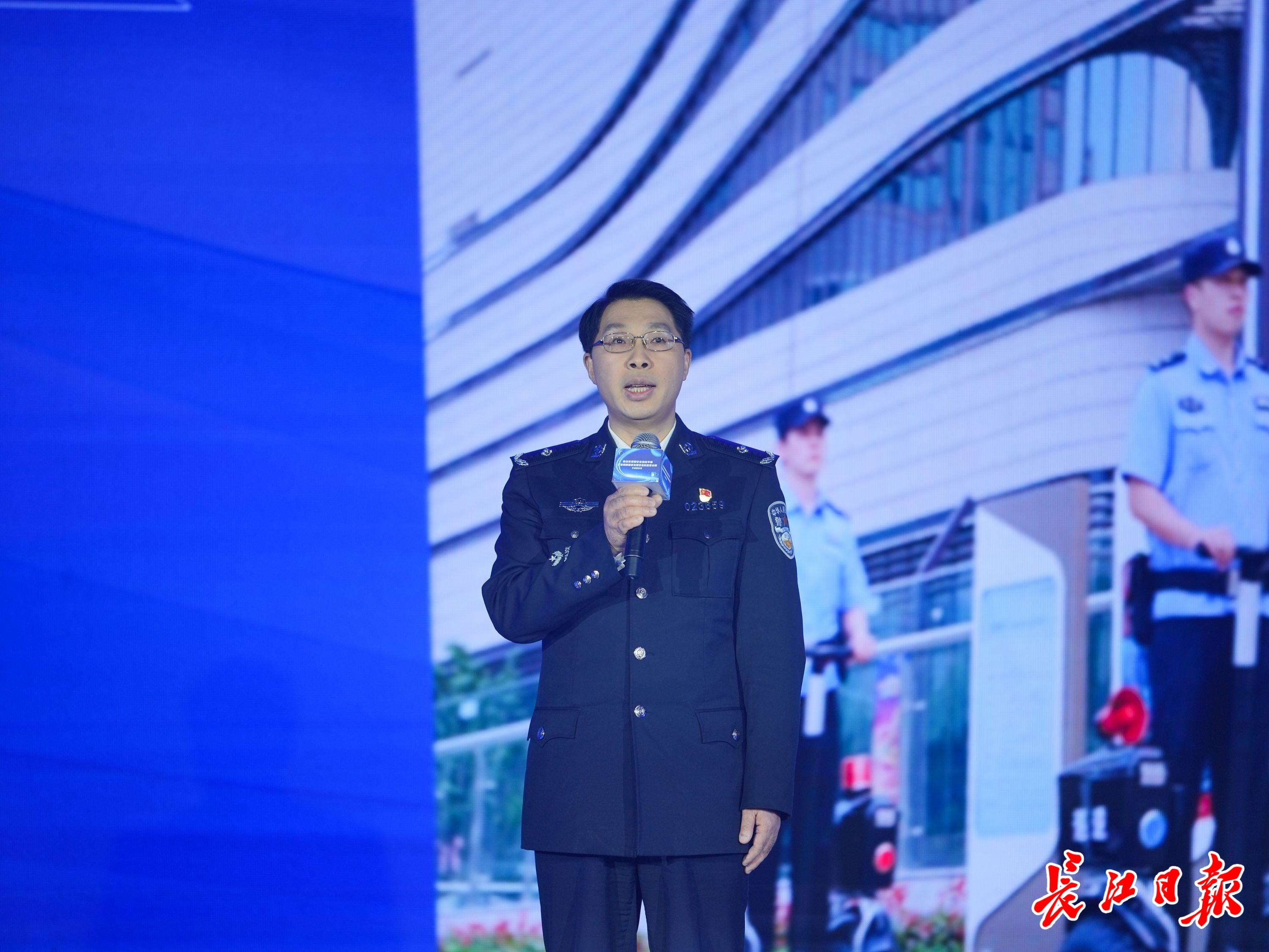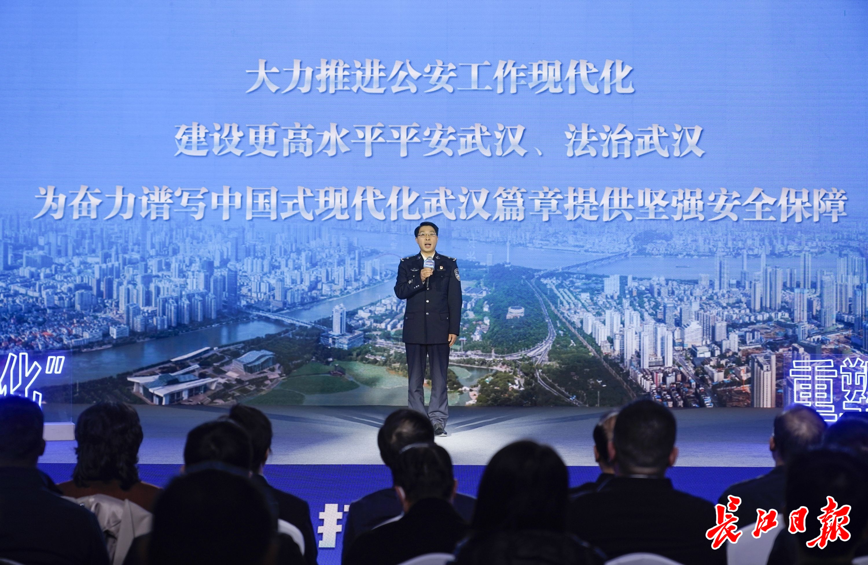 12月12日,在武汉举行“推动发展和安全动态平衡,打造保障国家发展安全的重要支撑”的主题报告会上,武汉市公安局警务指挥部主任周高利现场作报告。彭年 摄