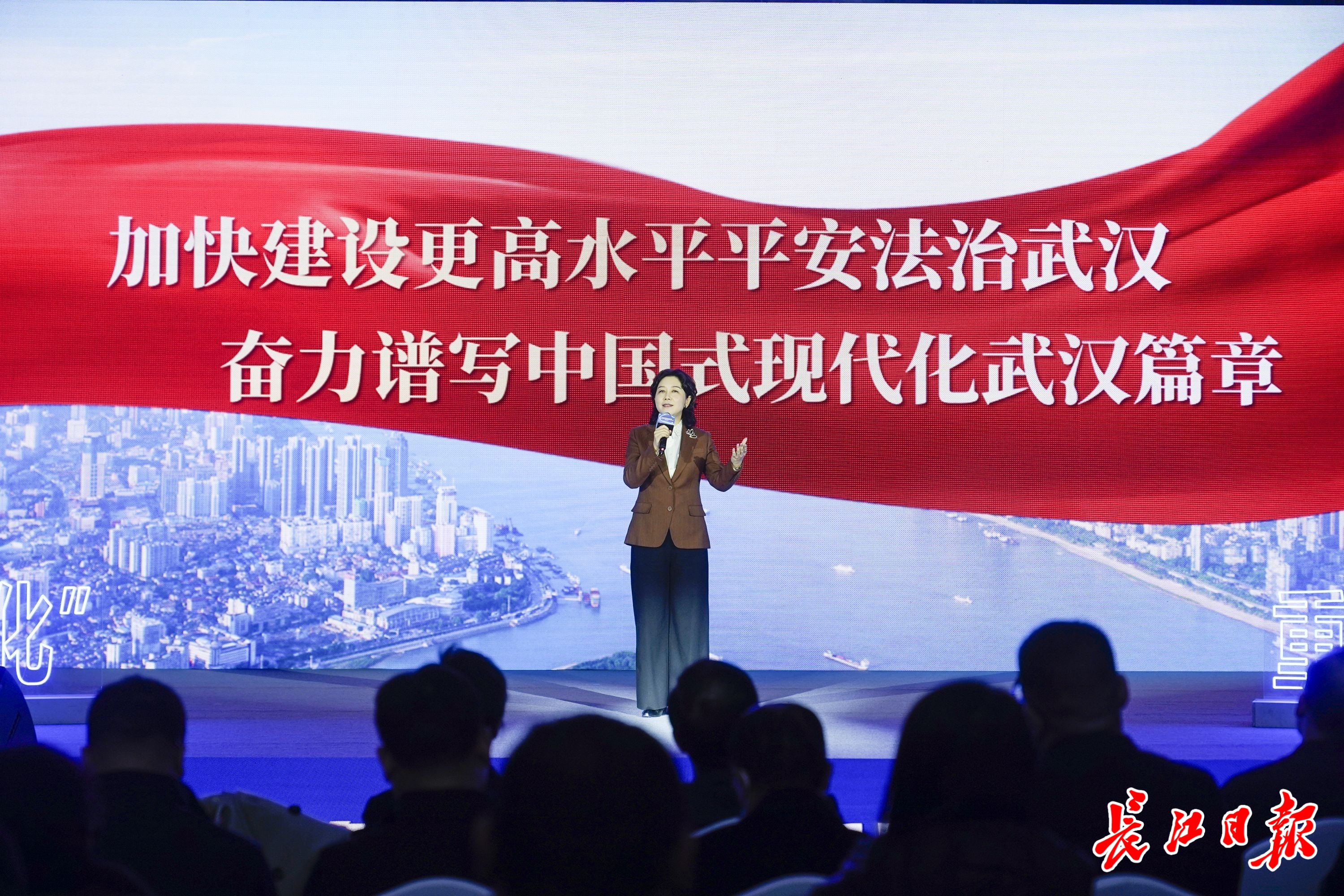 12月12日,在武汉举行“推动发展和安全动态平衡,打造保障国家发展安全的重要支撑”的主题报告会上,武汉市委政法委副书记周纯现场作报告。彭年 摄
