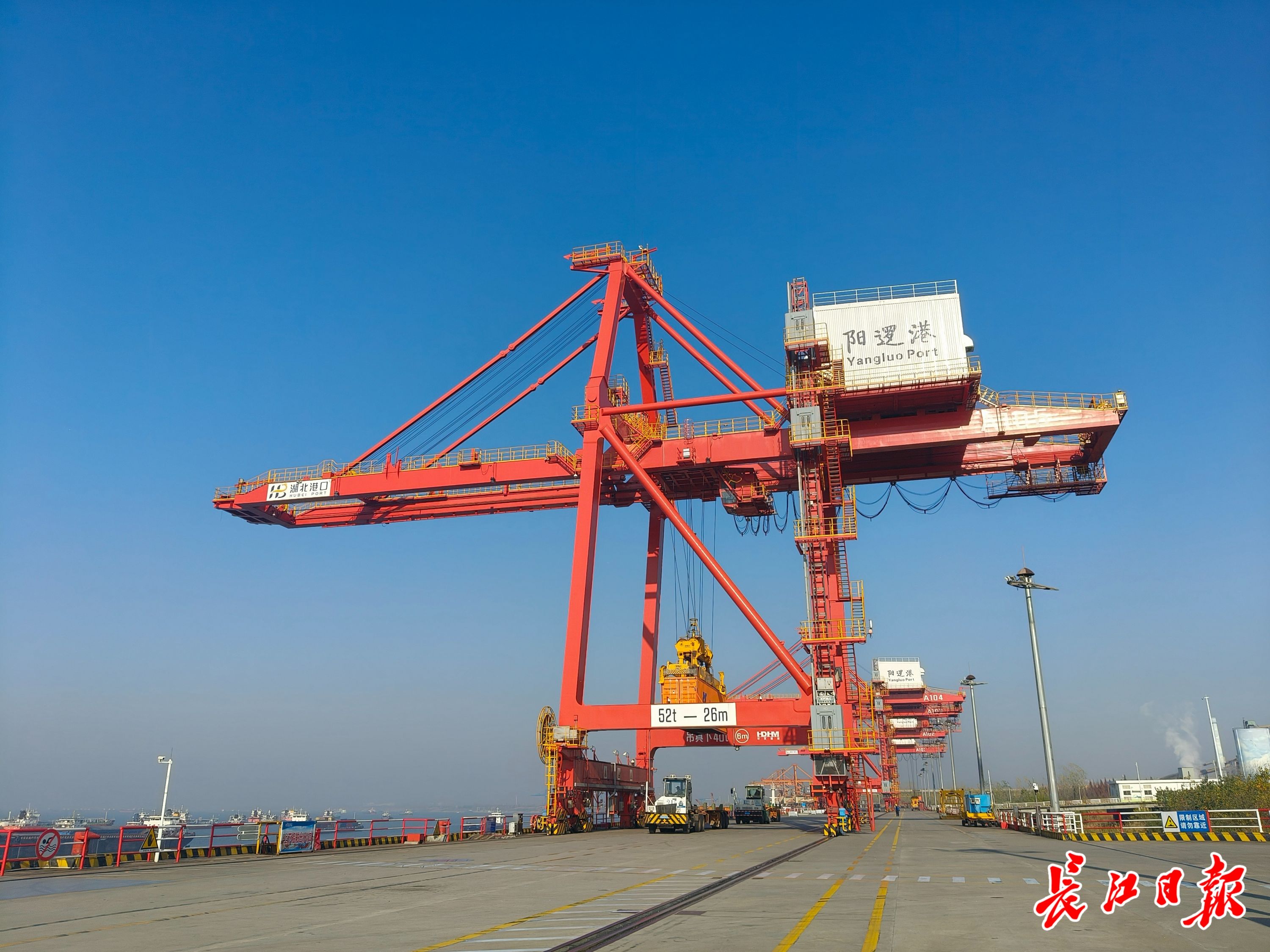 阳逻港码头正在进行集装箱装卸作业。记者刘海锋 摄