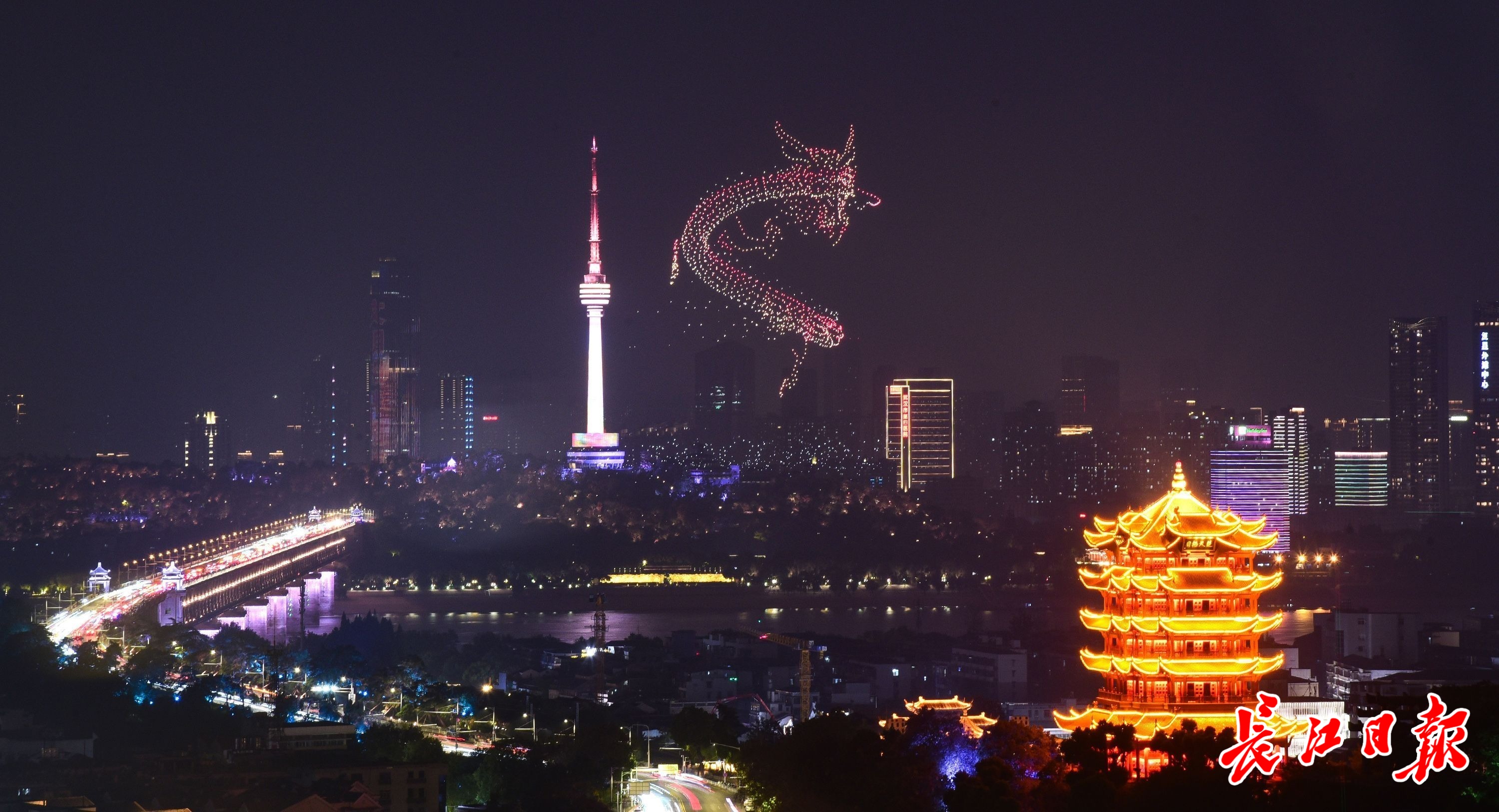 2024年9月12日,长江文化艺术节进行彩排。无人机组成的巨龙在空中飞舞。 长江日报记者 史伟 摄