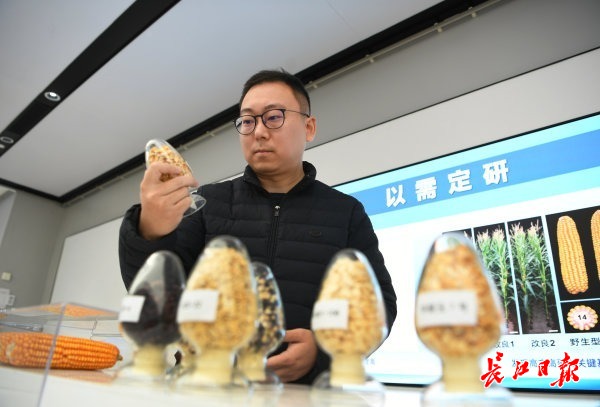 周昉在查看农产品种子。 长江日报记者高勇 摄