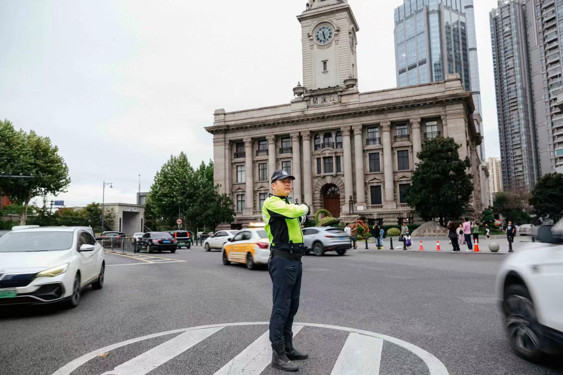 武汉交警护航交通。
