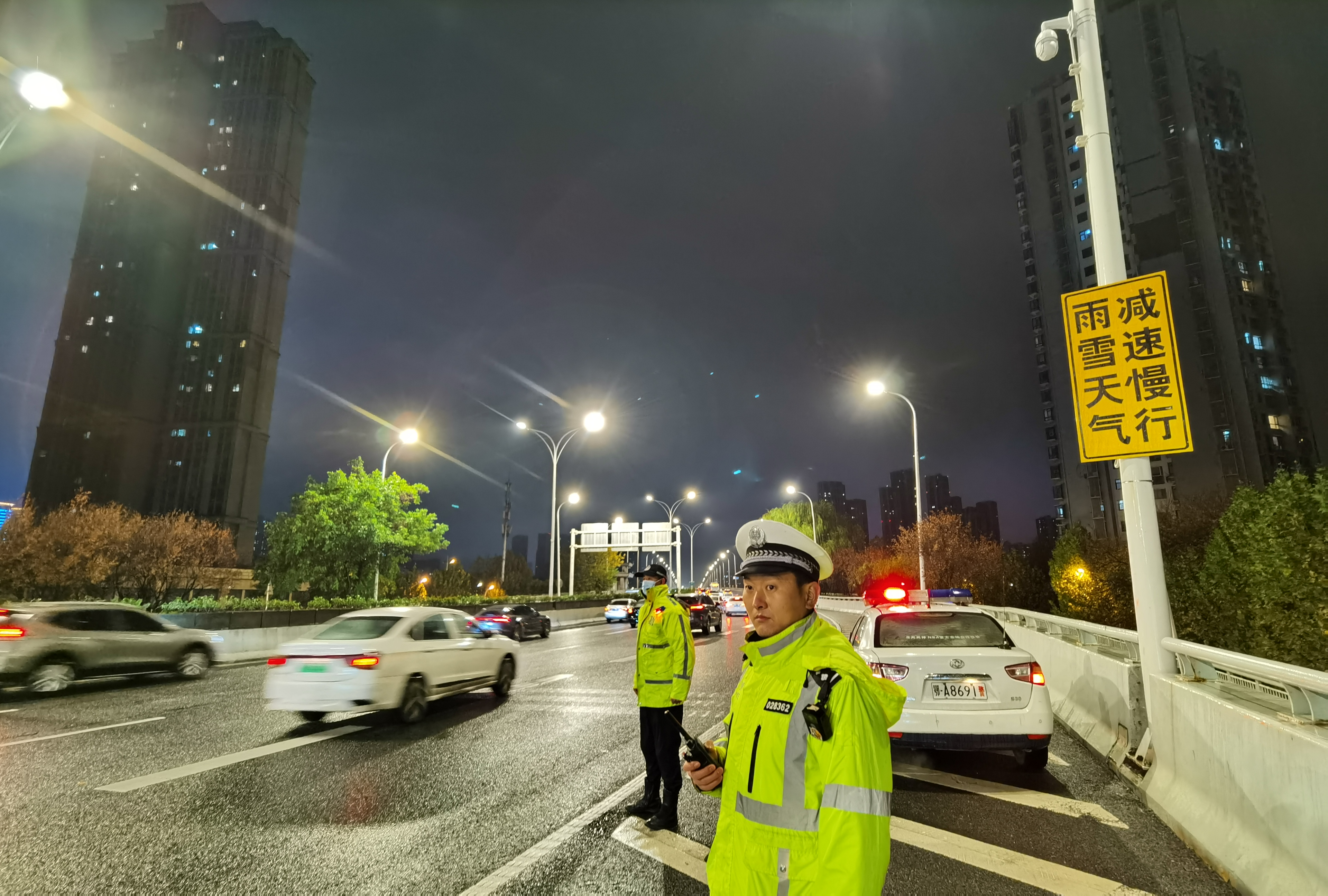 全市公安交管部门将密切关注道路通行情况,针对快速路、高架桥、道路转弯处等易积水、低温易结冰处,提前铺上草垫、摆放提示标牌、锥形筒等防护措施,提示过往行人及车辆注意;并增设警示标志,发现结冰路段后,第一时间联合城管工作人员紧急采取撒融雪剂等处置,指引车辆绕行,及时消除道路安全隐患。