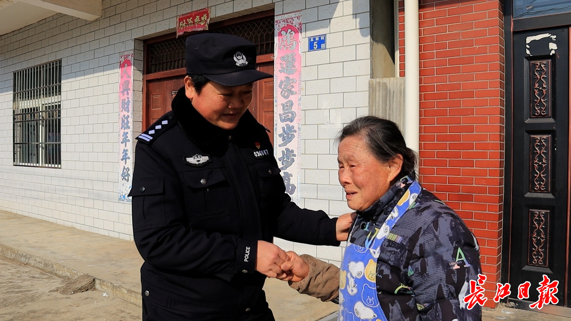 图2为东山派出所社区民警朱红(左)在居民邹腊仙(右)家门前交谈。长江日报记者 夏奕 摄