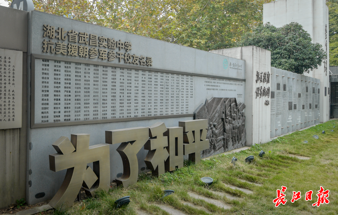 图为湖北省武昌实验中学校内抗美援朝浮雕纪念墙。记者史伟 摄