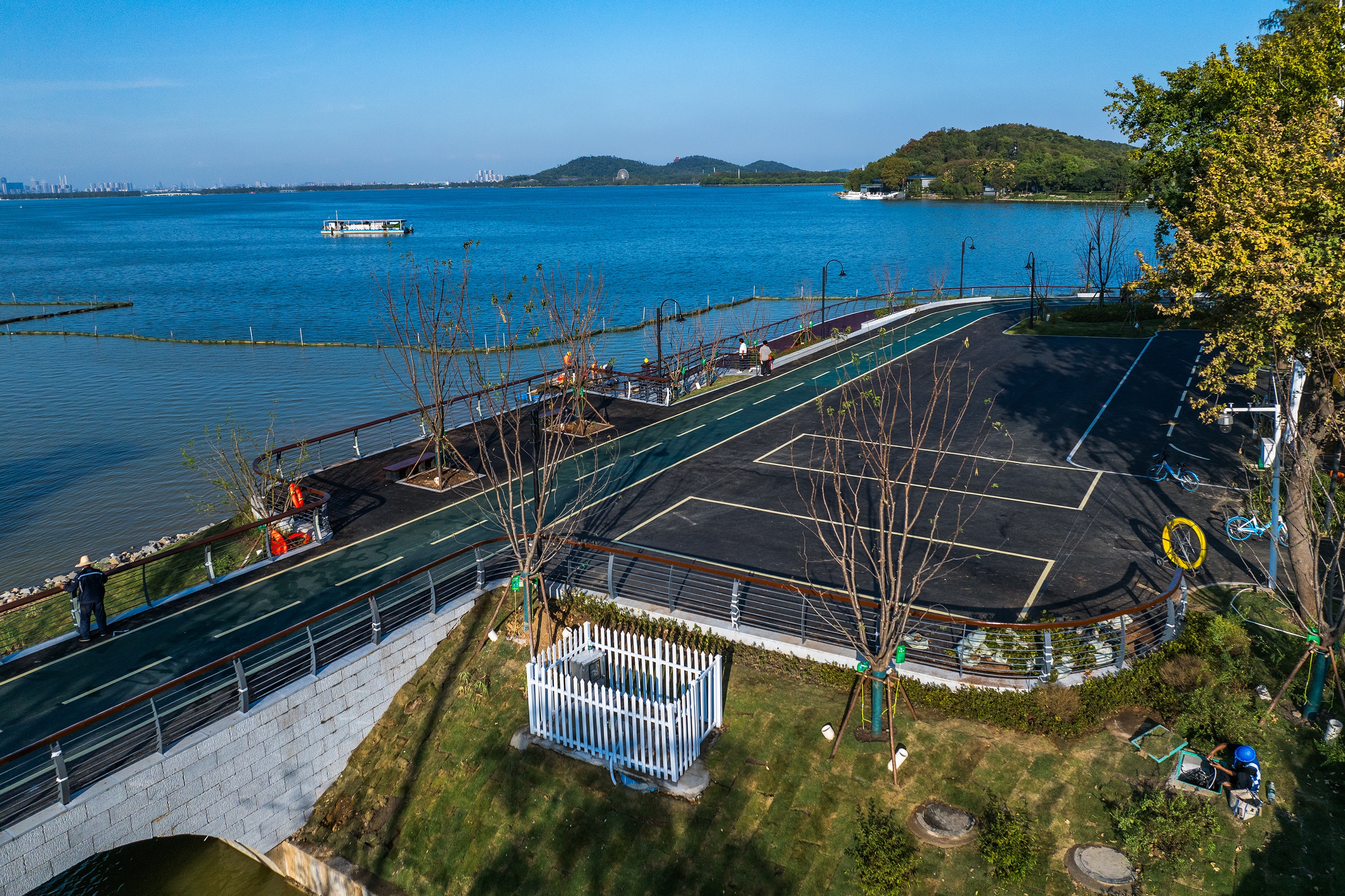 龙阳湖公园环湖绿道二期,也新修了一段。加上此前修建的部分,合计已建成环湖绿道9公里。