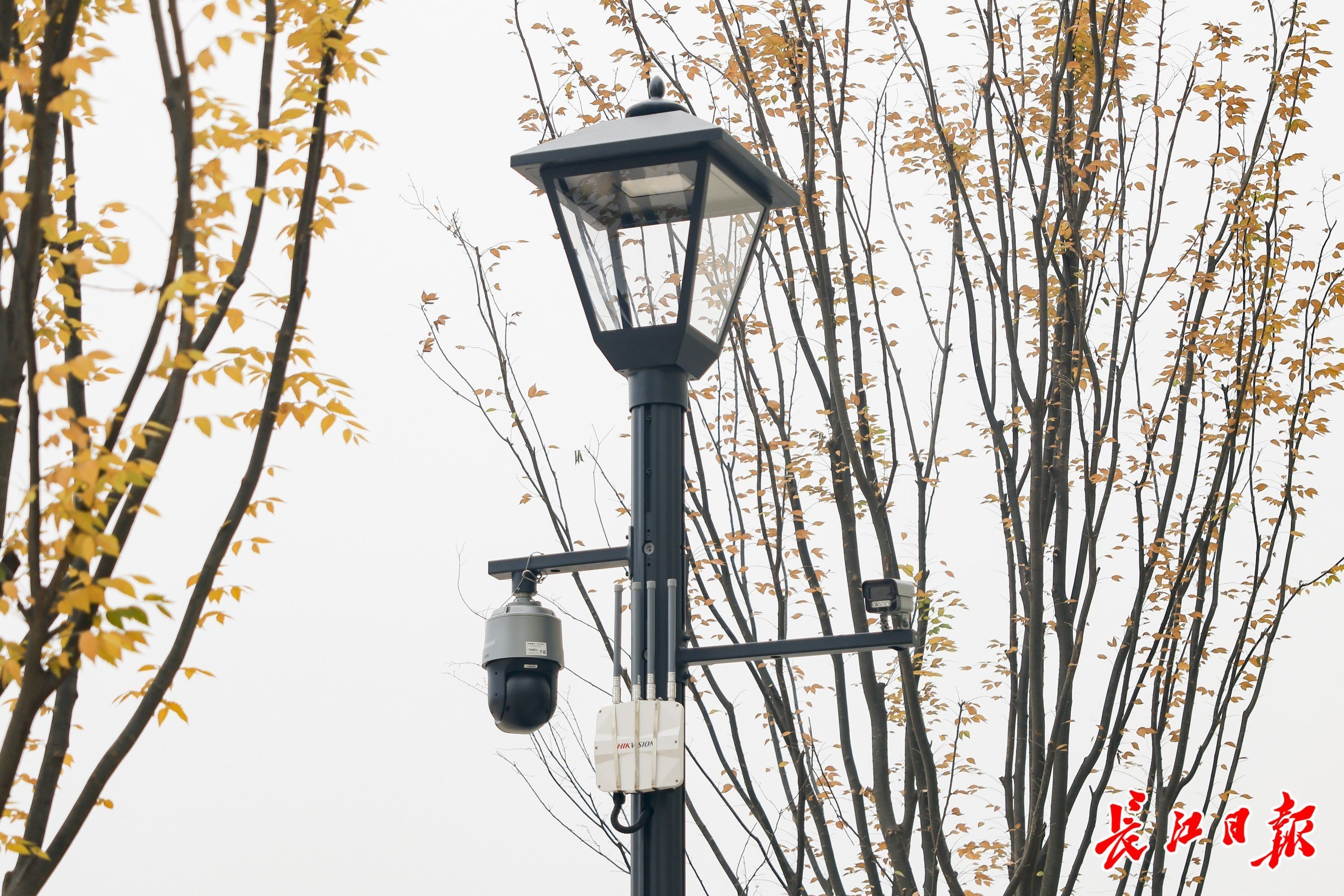 路灯上配套建设了手机充电、无线wifi及报警求助等智慧系统。长江日报记者 胡冬冬 摄