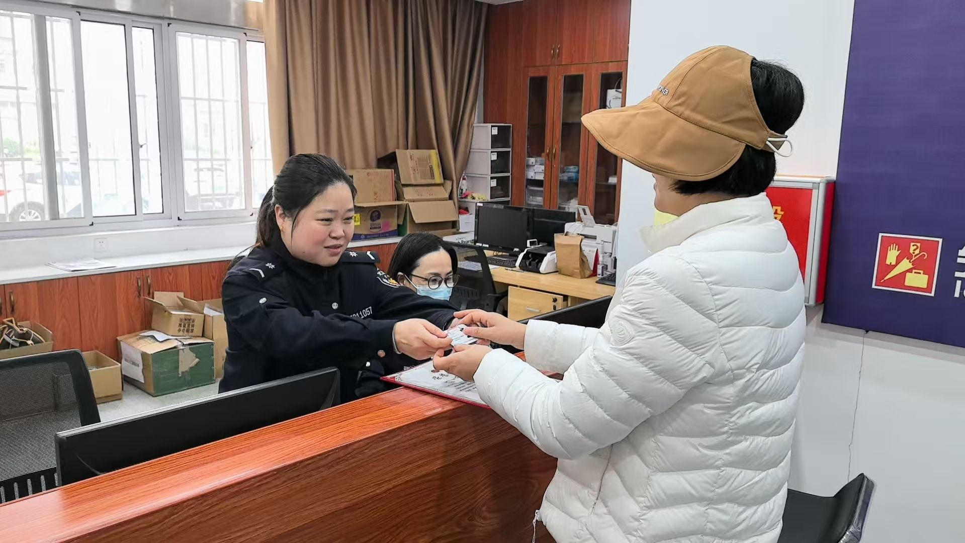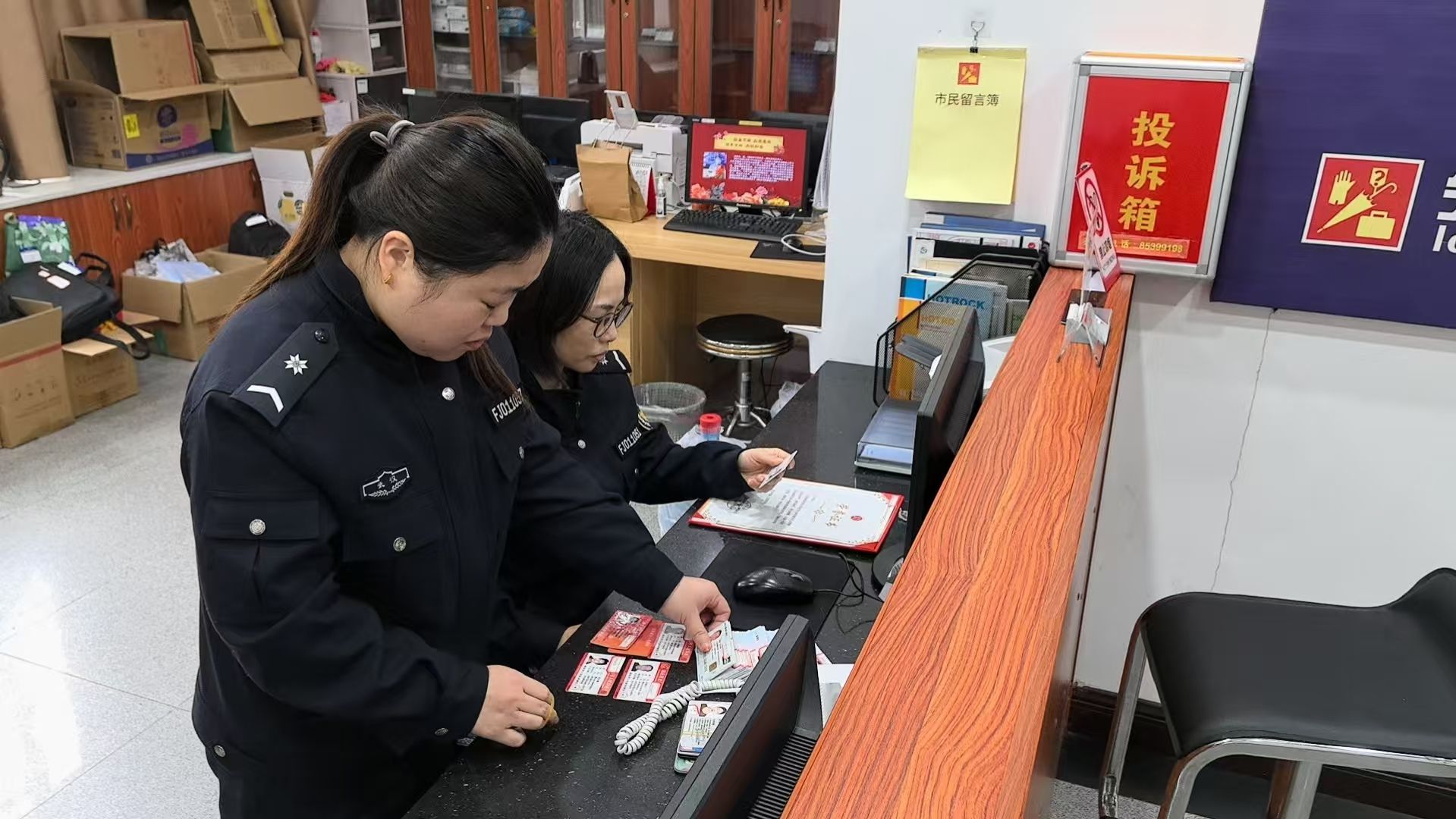 工作人员办理捡拾物品交接。通讯员武龚萱 摄