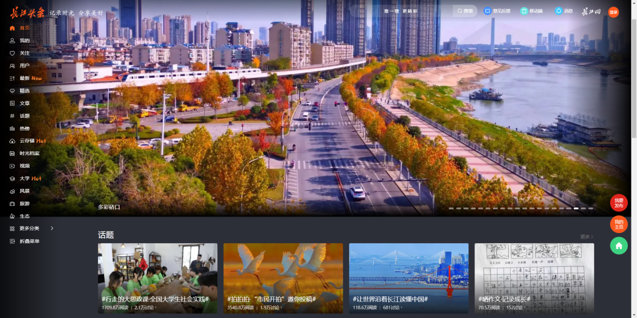 长江网“长江头条”平台定位于“记录时光、分享美好”。